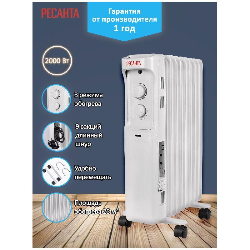 Радиатор масляный торгового бренда Ресанта серии ОМ-9А эффективно обогревает помещение площадью до 20 кв. метров. Компактная конструкция оптимально впишется в любой дизайн жилого и офисного помещения.