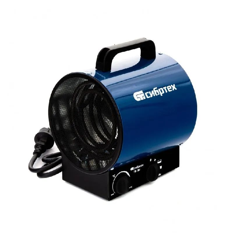 Тепловая электропушка с вентилятором СИБРТЕХ ТВ-3М 96437 – оборудование, применяемое для обогрева, просушки и вентиляции закрытых помещений различного типа. Используется в жилых и офисных помещениях, складах, амбарах, цехах, стройплощадках при температуре воздуха не ниже -10 С° и не выше +40 С°. Эффективен на площадях не более 40 м2.Особенности конструкции: