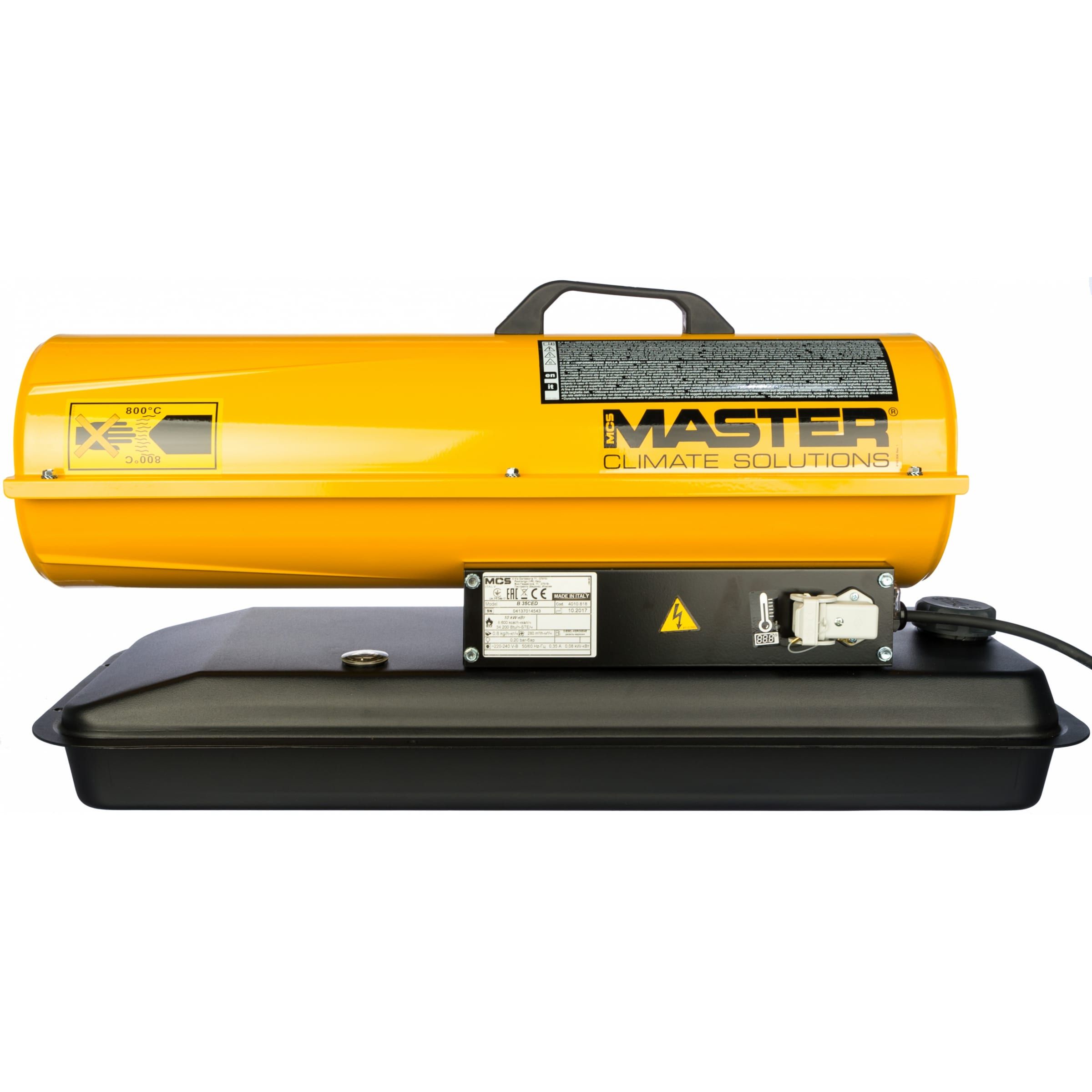 Тепловая пушка прямого нагрева В 70 СЕD работает от однофазной сети напряжением 220 В. Дополнительные функции — бездымное сгорание топлива, защита от перегрева, возможность подключить комнатный термостат для поддержки нужной температуры. Для удобства транспортировки агрегат поставляется с тележкой.