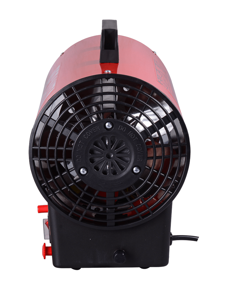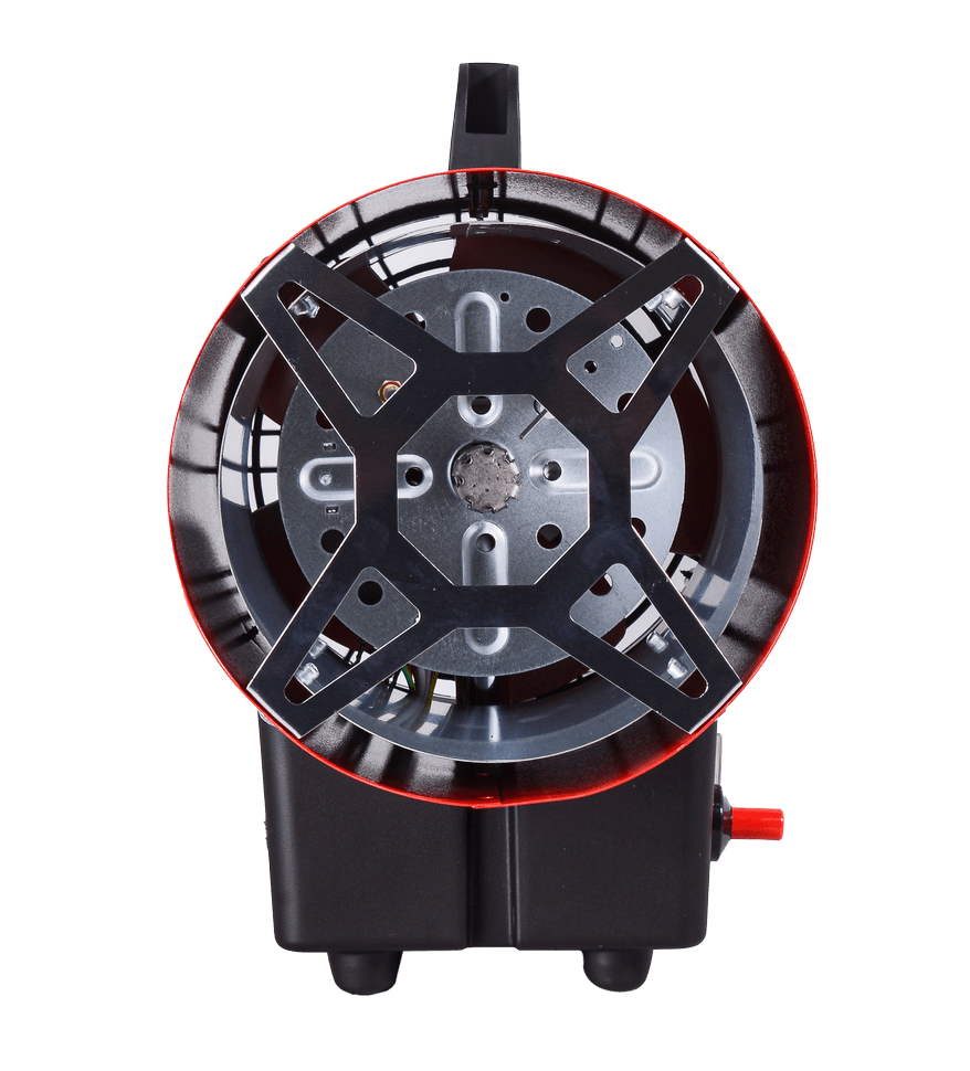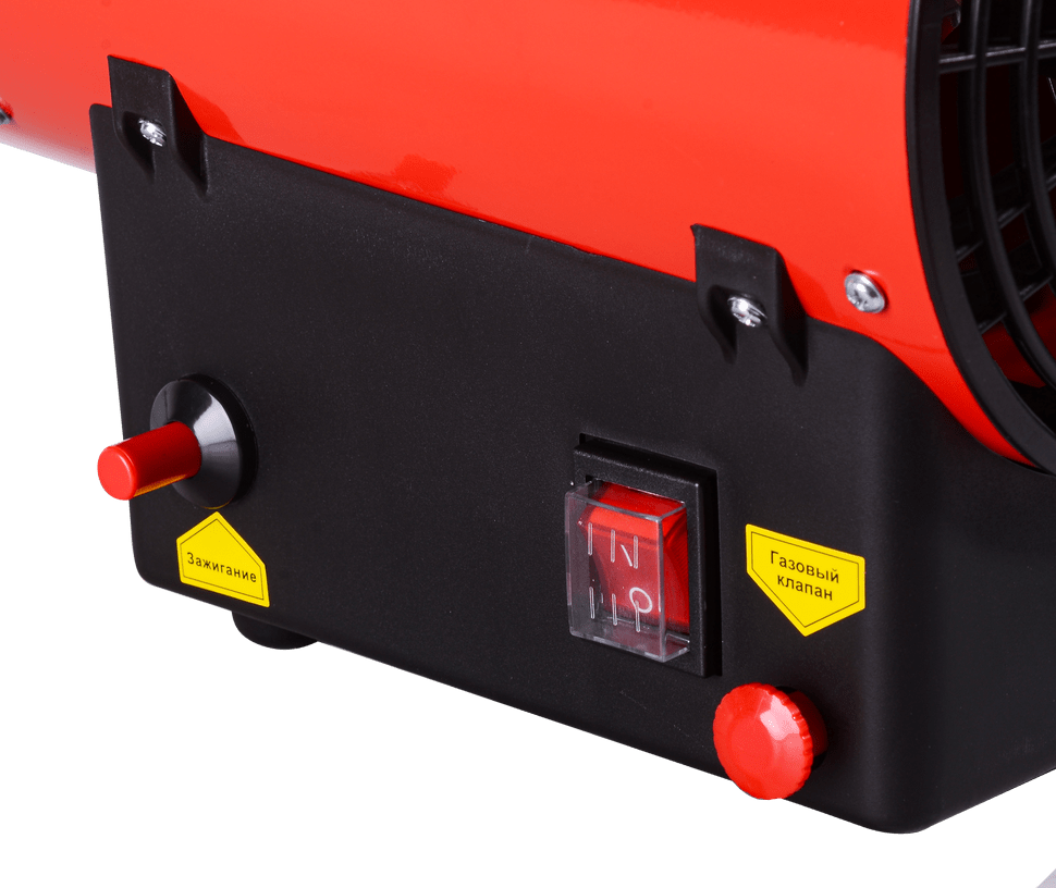 Контроль пламени происходит с помощью биметаллического термодатчика. При его угасании подача газа прекращается. Розжиг осуществляется с помощью пьезоэлемента. Помимо обогрева газовая тепловая пушка выполняет функцию вентилятора при отключении газового шланга. Камера сгорания оснащена горелкой, которая при подаче газа создает высокую температуру. С помощью вентилятора поток воздуха проходит через теплообменник и нагревается. Встроенный термостат препятствует перегреву оборудования, поддерживает необходимую температуру.
