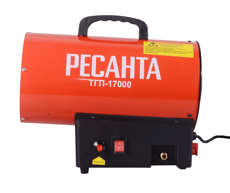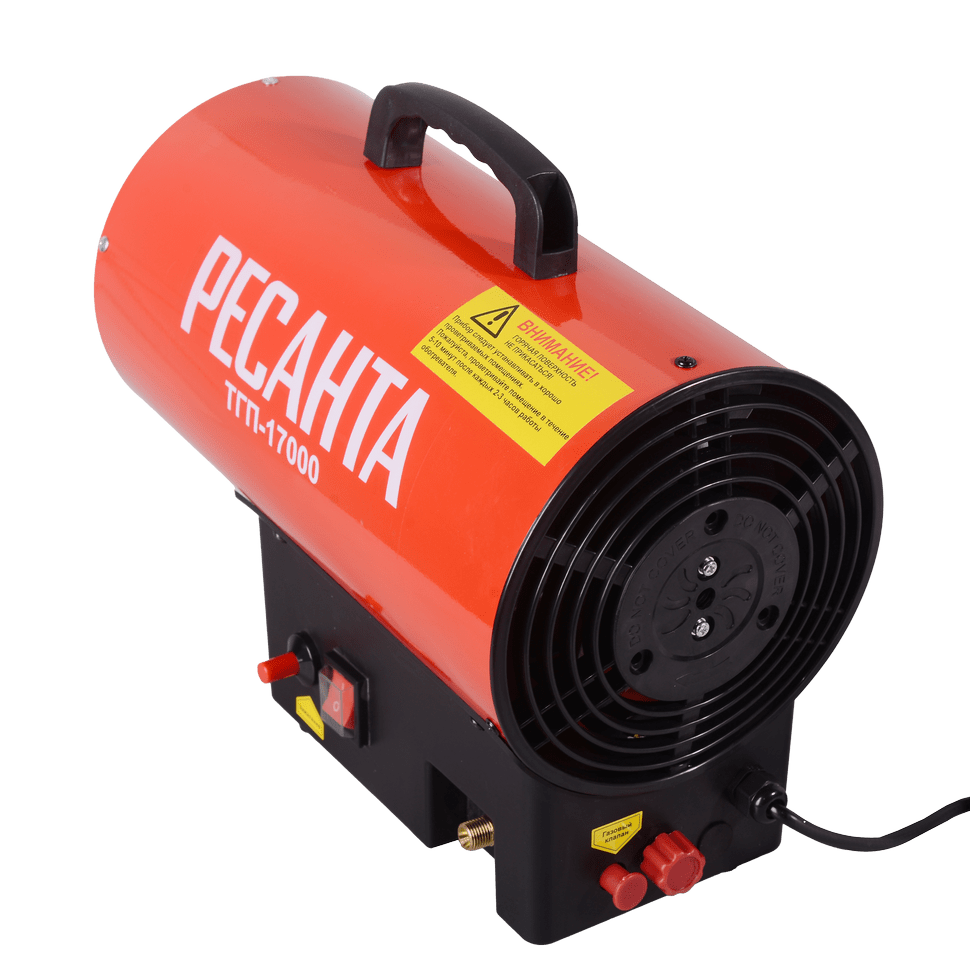 Переносная газовая теплопушка Ресанта ТГП-17000, обладающая регулируемой мощностью 11-17 кВт отлично подходит для обогрева нежилых помещений различных типов: складов, производственных цехов, строительных объектов. Передвижной отопительный прибор также может применяться для их вентиляции, доступен режим без нагрева воздуха. Газовая тепловая пушка работает на сжиженном топливе, для её заправки подходят пропан, пропан-бутан и бутан. Благодаря использованию электроэнергии вентилятор разгоняет нагретый воздух по помещению, за счёт чего нужная температура достигается в короткие сроки. При этом расход энергии остаётся экономичным.