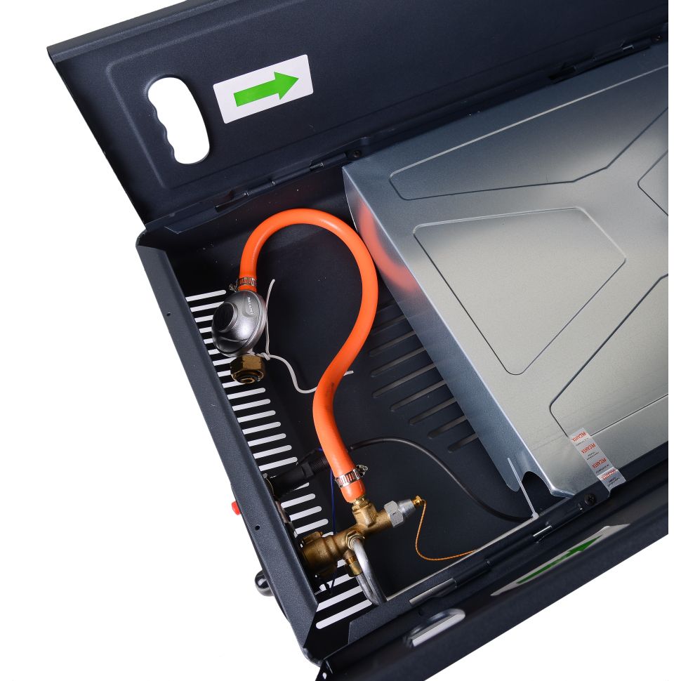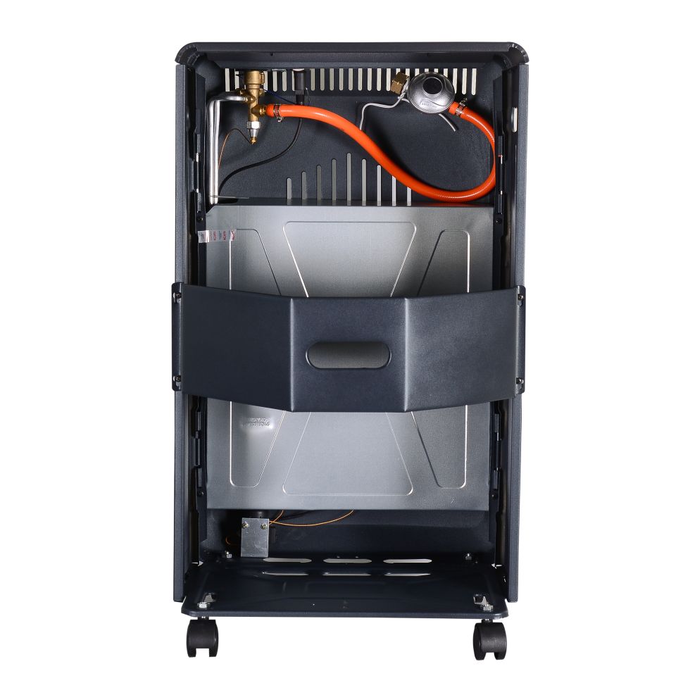 Инфракрасный газовый обогреватель – обогреватель, работающий на газовом топливе. Теплоотдача осуществляется преимущественно инфракрасным излучением. Данный газовый обогреватель предназначен для безопасной, эффективной и надежной работы и использует для работы исключительно сжиженный газ (пропан, пропан-бутан). Емкости для газа поставляются отдельно.Для данного оборудования необходимо приобрести подходящий газовый баллон, 12 л. для ПГ- 4200С, 27 л. для ПГ- 4200Б. При первом наполнении потребуется воздушная продувка баллона для обеспечения правильной работы нагревателя. Эту процедуру необходимо произвести на газонаполнительной станции. Каждый раз при заполнении на подходящей газонаполнительной станции баллон вашего нагревателя необходимо проверить для обеспечения безопасной работы. Обогреватель должен размещаться с соблюдением необходимого безопасного расстояния до стен и предметов.В состав нагревателя входит система устройств безопасности, отключающих нагреватель при возникновении опасных условий.· Обогреватель автоматически отключается, если внезапно погаснет фитиль.· Обогреватель автоматически отключается при его опрокидывании. В этом случае верните нагреватель в вертикальное положение, проверьте на наличие возможных повреждений и подождите 5-10 минут перед повторным зажиганием. Данное устройство также может отключить нагреватель при получении им ударов.· Обогреватель автоматически отключается, когда концентрация углекислого газа СО² в воздухе помещения достигает 0,8-1,5%.