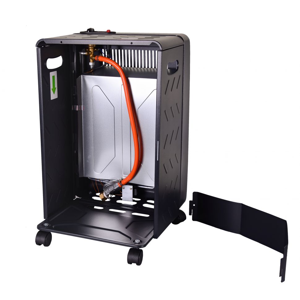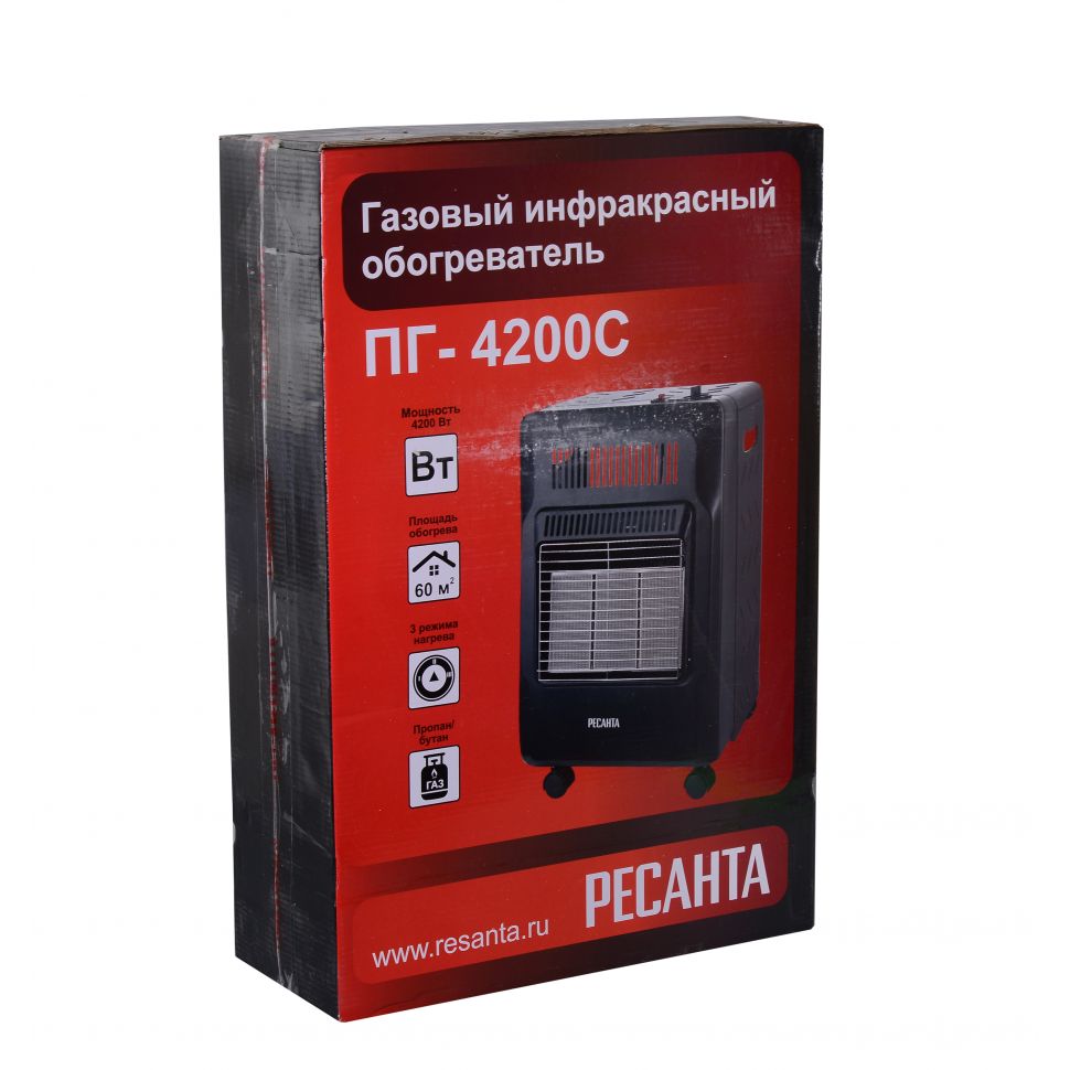 Инфракрасный газовый обогреватель – обогреватель, работающий на газовом топливе. Теплоотдача осуществляется преимущественно инфракрасным излучением. Данный газовый обогреватель предназначен для безопасной, эффективной и надежной работы и использует для работы исключительно сжиженный газ (пропан, пропан-бутан). Емкости для газа поставляются отдельно.Для данного оборудования необходимо приобрести подходящий газовый баллон, 12 л. для ПГ- 4200С, 27 л. для ПГ- 4200Б. При первом наполнении потребуется воздушная продувка баллона для обеспечения правильной работы нагревателя. Эту процедуру необходимо произвести на газонаполнительной станции. Каждый раз при заполнении на подходящей газонаполнительной станции баллон вашего нагревателя необходимо проверить для обеспечения безопасной работы. Обогреватель должен размещаться с соблюдением необходимого безопасного расстояния до стен и предметов.В состав нагревателя входит система устройств безопасности, отключающих нагреватель при возникновении опасных условий.· Обогреватель автоматически отключается, если внезапно погаснет фитиль.· Обогреватель автоматически отключается при его опрокидывании. В этом случае верните нагреватель в вертикальное положение, проверьте на наличие возможных повреждений и подождите 5-10 минут перед повторным зажиганием. Данное устройство также может отключить нагреватель при получении им ударов.· Обогреватель автоматически отключается, когда концентрация углекислого газа СО² в воздухе помещения достигает 0,8-1,5%.