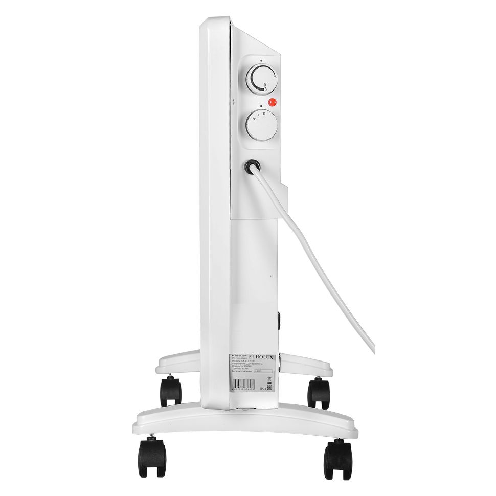 Конвектор — электрический отопительный прибор для обогрева помещений.Холодный воздух, находящийся в нижней части комнаты на уровне ног, проходит через нагревательный элемент конвектора, который находится в нижней части корпуса. Увеличиваясь в объеме в момент нагрева, теплый поток устремляется вверх через жалюзи выходной решетки и плавно распространяется по комнате в процессе естественной конвекции.