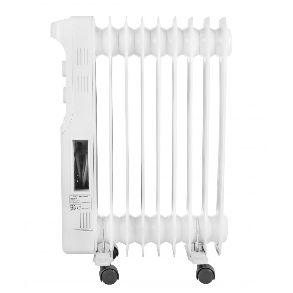 Масляный радиатор Ресанта предназначен для обогрева воздуха и создания комфортной атмосферы в холодное время года. В металлическом корпусе находится масло, нагреваемое до высокой температуры при помощи нагревательного элемента. Далее радиатор отдает тепло помещению. Масляный радиатор оснащен термостатом, что позволяет ему автоматически поддерживать в помещении заданную пользователем температуру. Существенным плюсом является и то, что он обладает низкой температурой корпуса, благодаря чему практически не выжигает кислород в помещении.