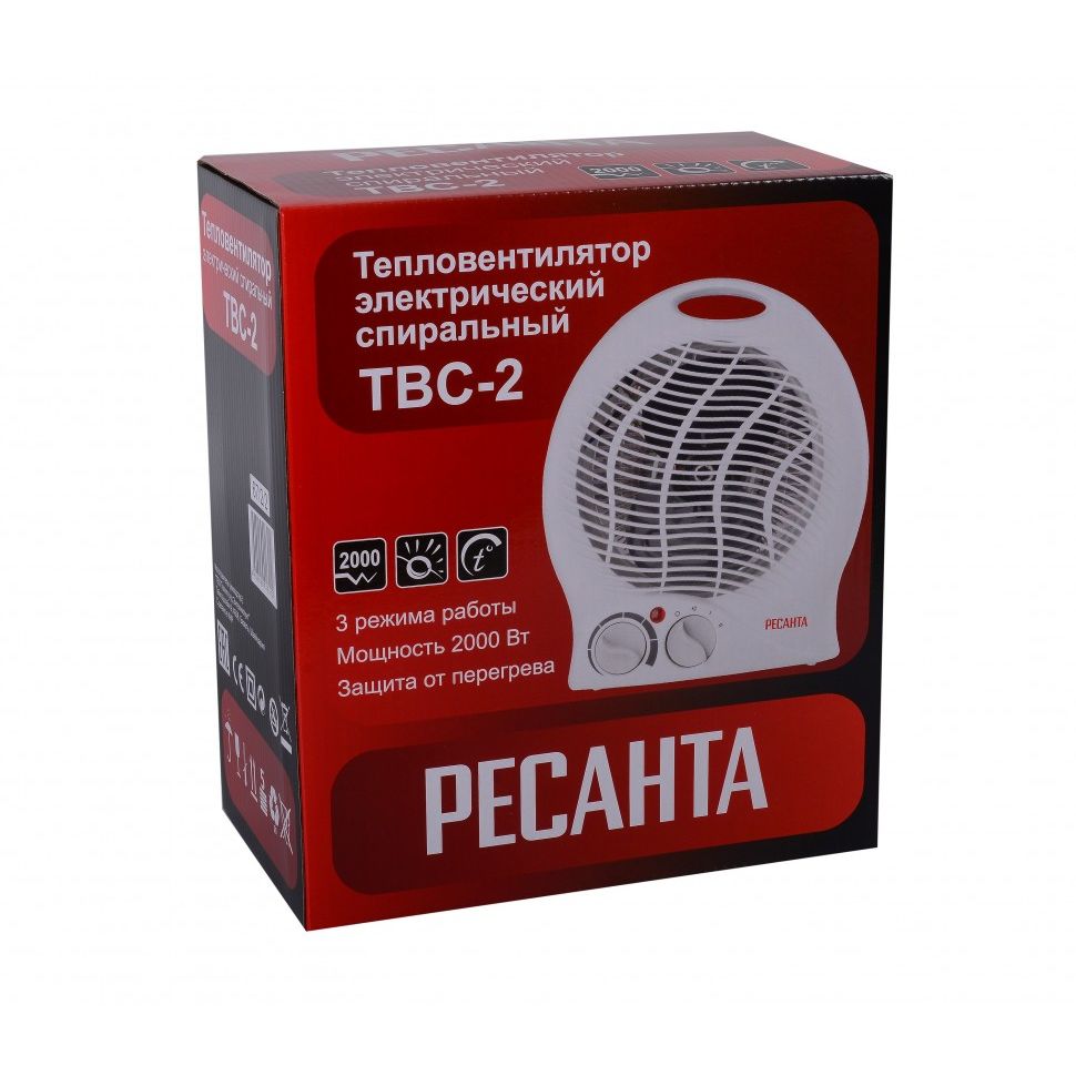 Тепловентилятор Ресанта ТВС-2 используется для обогрева помещения. Есть три режима работы: вентилятор, обогрев на пониженной и высокой мощности. Прибор оснащен спиральным нагревательным элементом. В каждом устройстве подобного типа имеется обыкновенный вентилятор, который перемещает холодный воздух, подгоняя его к нагревательному элементу. Подогретые воздушные массы устремляются в комнату, благодаря этому помещение эффективно нагревается. Тепловентилятор хорош тем, что может создать комфортную температуру в помещении достаточно быстро. Если воздушный поток, создаваемый вентилятором, имеет узкую направленность, то можно практически моментально подогреть воздух только там, где это необходимо. А летом эти обогреватели легко превращаются в обычные вентиляторы.Особенности: