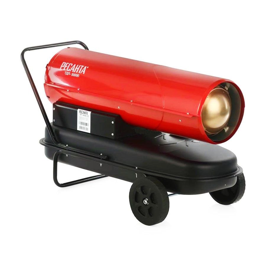 Дизельная тепловая пушка РЕСАНТА ТДП-50000 — функциональный обогреватель с прямым нагревом для отопления складских, строительных и других помещений.