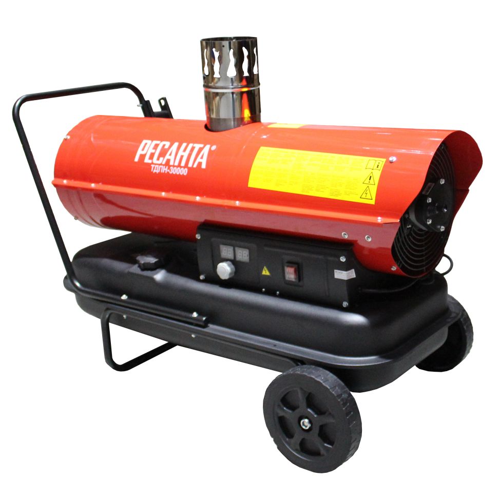 Дизельная тепловая пушка РЕСАНТА ТДПН-30000 — функциональный обогреватель с непрямым нагревом для отопления складских, строительных и других помещений. При использовании непрямого нагрева воздух не смешивается с продуктами горения солярки. Для передачи тепла предусмотрен специальный теплообменник, который нагревает воздух. Сам теплообменник накаляется сгоревшим топливом, а все продукты горения, пройдя через него, уходят в смонтированную дымовую трубу. Это позволяет использовать подобные устройства для монтажа потолочных покрытий натяжного плана.Преимущества: