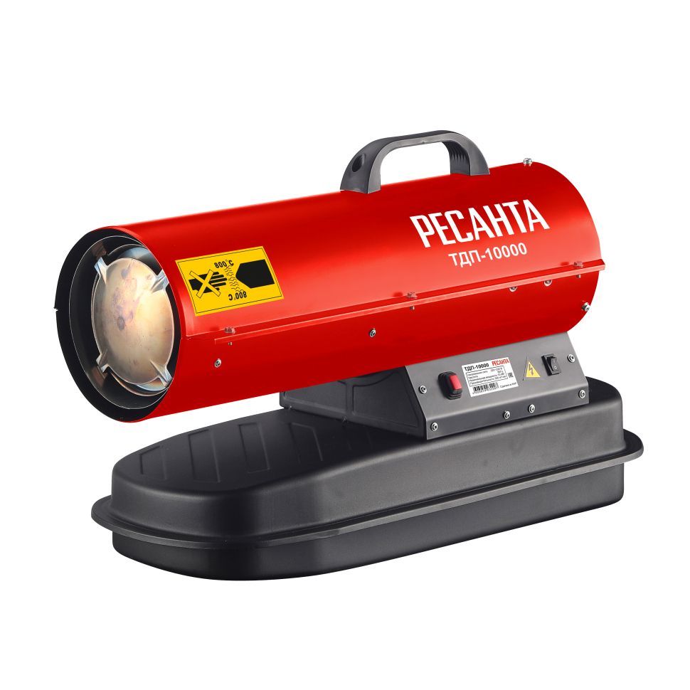 Дизельная тепловая пушка РЕСАНТА ТДП-10000 — функциональный обогреватель с прямым нагревом для отопления складских, строительных и других помещений.