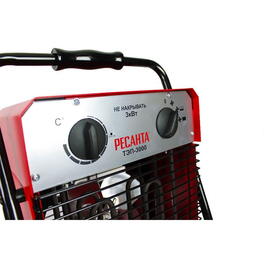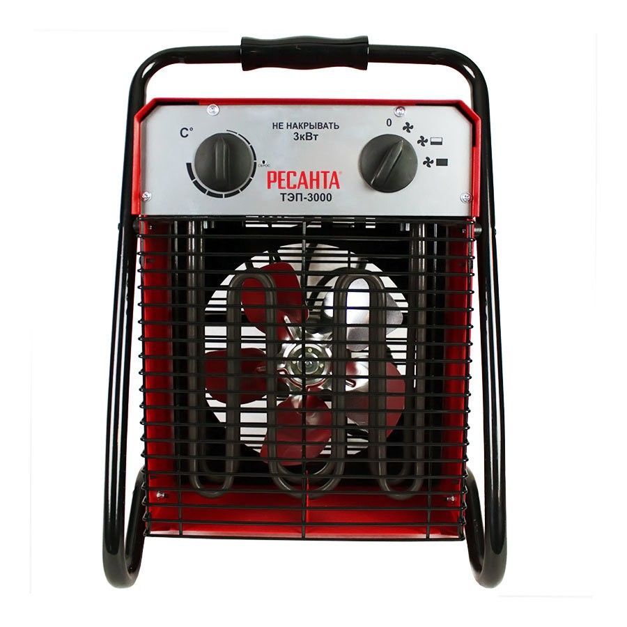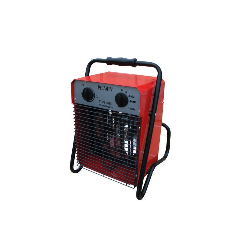 Тепловая электрическая пушка РЕСАНТА ТЭП-3000 предназначена для вентиляции и обогрева жилых и производственных помещений, складов, гаражей, а также для обогрева и сушки в строительстве. Прибор относится к тепловым пушкам квадратного типа. Нагревательный элемент — трубчатый. Данная модель рассчитана на питание от электросети переменного тока частотой 50 Гц, номинальным напряжением 220-230В (однофазная). Устанавливается на полу.Обогреватель оснащен регулировкой режимов работы (мощности):