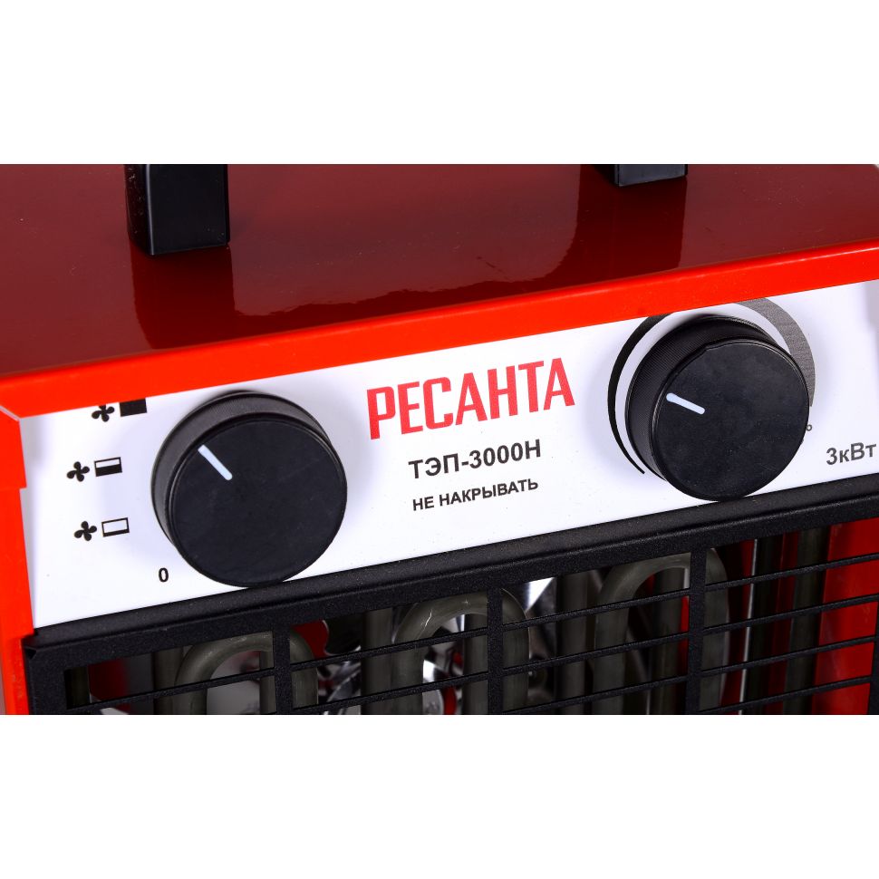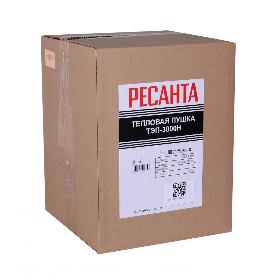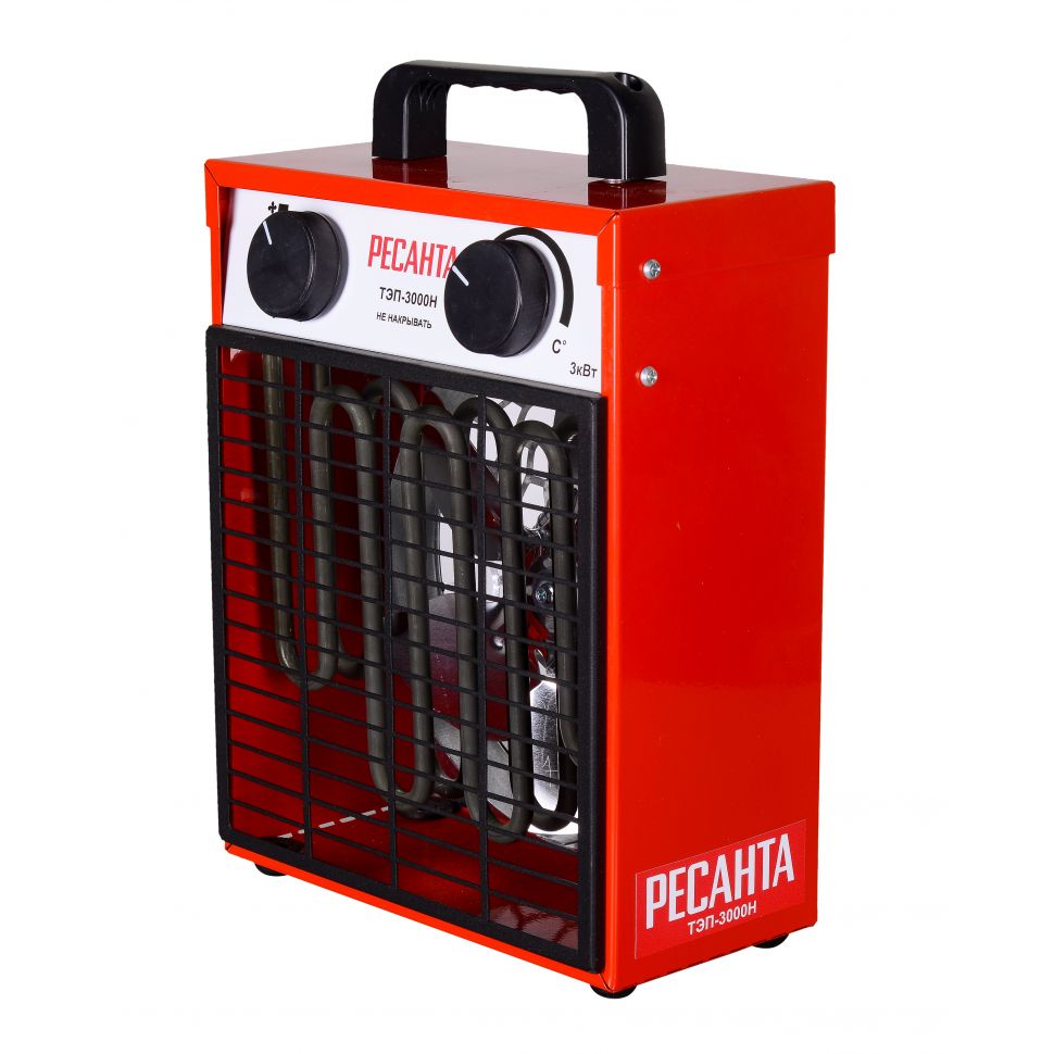 Тепловая электрическая пушка РЕСАНТА ТЭП-3000Н предназначена для вентиляции и обогрева жилых и производственных помещений, складов, гаражей, а также для обогрева и сушки в строительстве. Прибор относится к тепловым пушкам компактного типа. Нагревательный элемент — трубчатый. Данная модель рассчитана на питание от электросети переменного тока частотой 50 Гц, номинальным напряжением 220-230В (однофазная). Устанавливается на полу.Обогреватель оснащен регулировкой режимов работы (мощности):