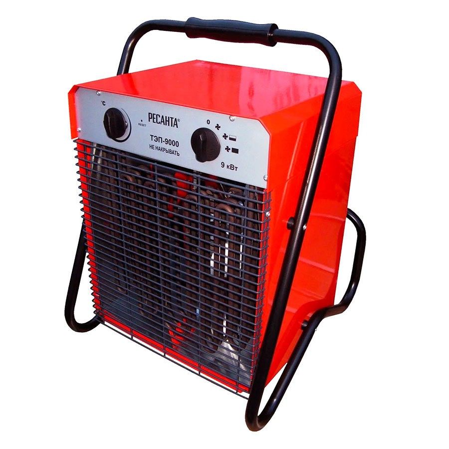 Тепловая электрическая пушка РЕСАНТА ТЭП-9000 предназначена для вентиляции и обогрева жилых и производственных помещений, складов, гаражей, а также для обогрева и сушки в строительстве. Прибор относится к тепловым пушкам квадратного типа. Нагревательный элемент — трубчатый. Данная модель рассчитана на питание от электросети переменного тока частотой 50 Гц, номинальным напряжением 380В (трехфазная). Устанавливается на полу.Обогреватель оснащен регулировкой режимов работы (мощности):