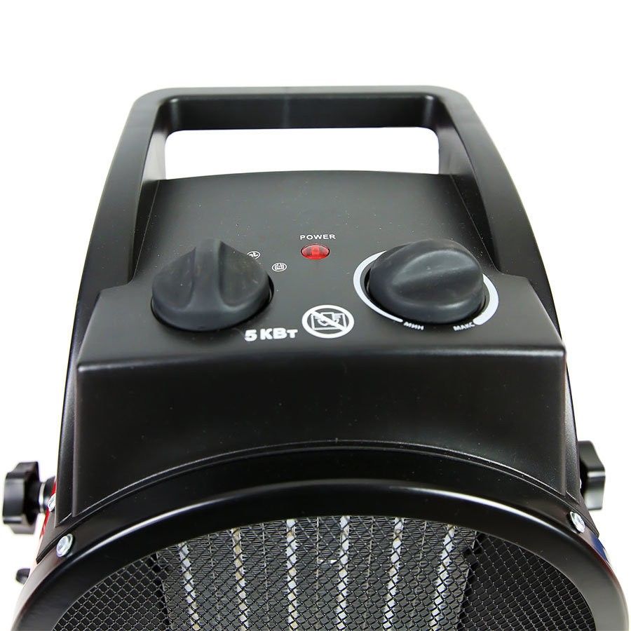 Тепловая электрическая пушка РЕСАНТА ТЭПК-5000K предназначена для вентиляции и обогрева жилых и производственных помещений, складов, гаражей, а также для обогрева и сушки в строительстве. Прибор относится к тепловым пушкам круглого типа. Нагревательный элемент — керамический. Данная модель рассчитана на питание от электросети переменного тока частотой 50 Гц, номинальным напряжением 220-230В (однофазная). Устанавливается на полу.Обогреватель оснащен регулировкой режимов работы (мощности):