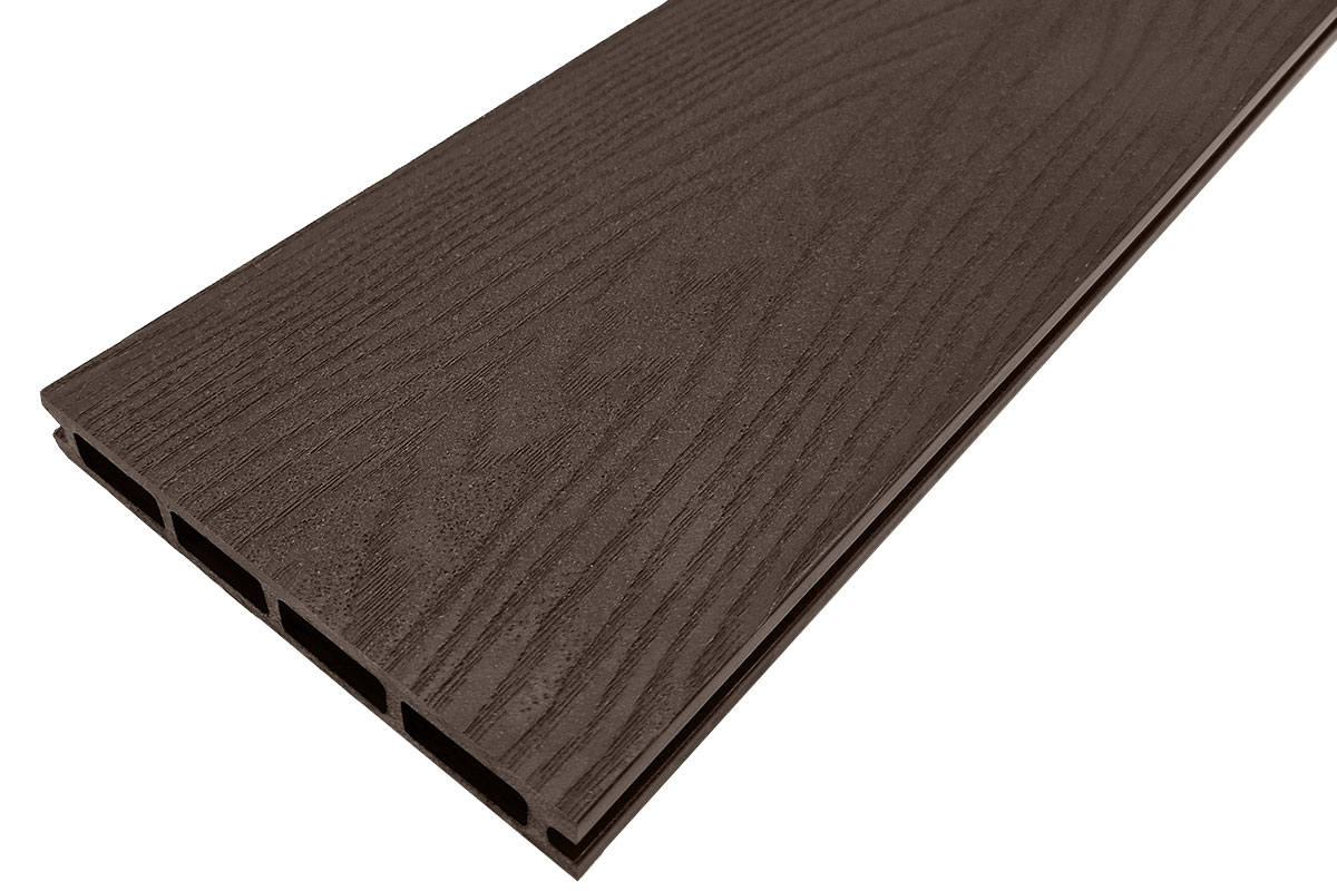 Универсальная доска ДПК holzhof: на 55% состоит из древесины, на 35% — из полимеров, на 10% — из стабилизаторов и пигментов, обладает свойствами натуральной древесины и прочностью характерной для полимеров.