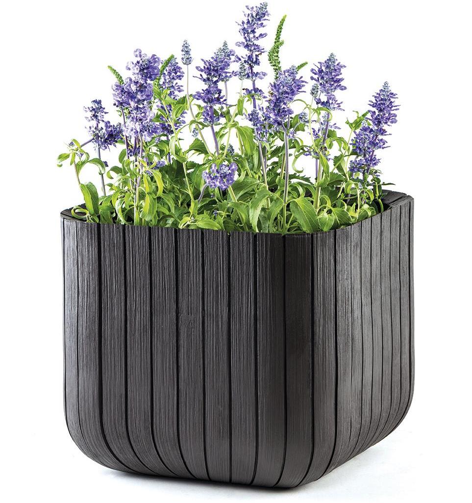 Кашпо из пластика очень точно имитирует текстуру дерева, однако в отличие от натурального дерева, пластиковое кашпо не гниет и не выцветает на солнце.