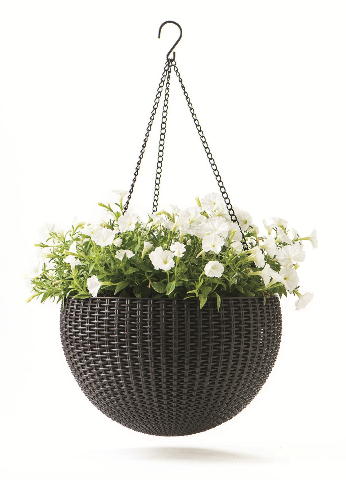 Круглый, подвесной горшок Keter Rattan Hanging идеально подходит для любого сада и жилых интерьеров. Выполнение на основе имитации натурального ротанга и вневременной дизайн являются его основными достоинствами. Горшок, благодаря используемому для производства высококачественному пластику, устойчив к неблагоприятным погодным условиям. Красиво продемонстрирует как вьющиеся, так и классические цветочные композиции.
