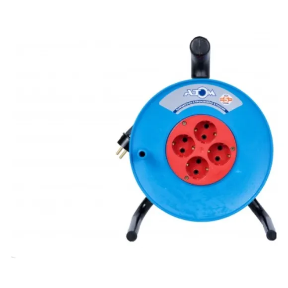 Среди особенностей данной модели стоит отметить 4 гнезда с заглушками, которые мгновенно закрывают розетку после удаления вилки, благодаря чему обеспечивается надежная защита от влаги и пыли IP44. Конструкционные особенности катушки позволяют не только компактно хранить кабель, но и исключают запутывание провода, в результате чего срок службы удлинителя увеличивается.