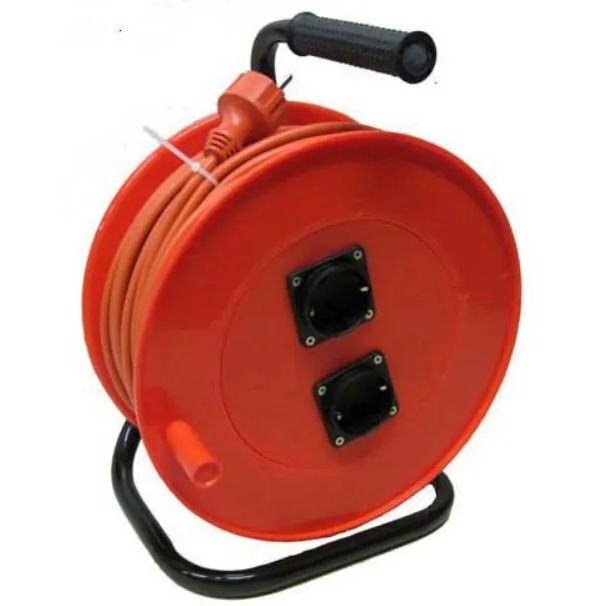 Удлинитель силовой c двумя встроенными розетками на открытой кабельной катушке. Предназначен для присоединения к электрической сети до 250В, номинальная частота 50Гц.