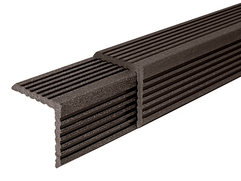 Для придания законченного и эстетичного вида террасы используются уголки для террасной доски из древесно-полимерного композита.