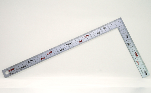 Плоский угольник из нержавеющей стали размером 300 х 150мм. Цена деления 1мм. 8 измерительных шкал.