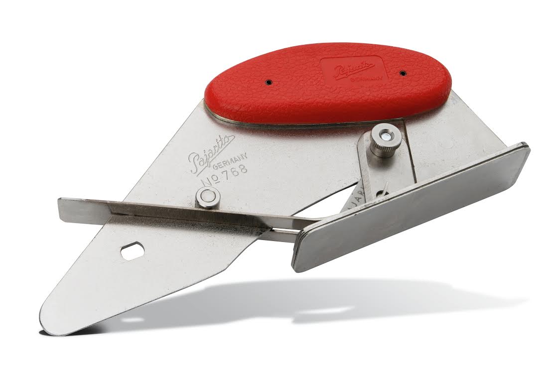 Сталь. Корпус из никелированной стали с пластиковой ручкой. Режет снизу. В комплекте с 1 установленным специальным лезвием и 10 запасными лезвиями арт 768E.