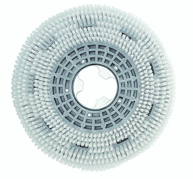 Щетка с твердыми нейлоновыми волокнами белого цвета для чистки керамических, мраморных и каменных полов.