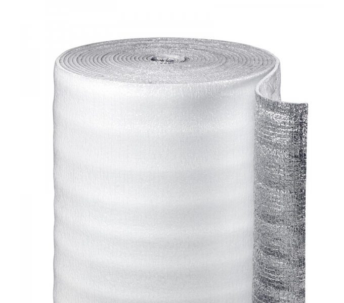 Тепофол C — это вспененный полиэтилен с клеевым слоем с одной стороны. С другой стороны может быть нанесен теплоотражающий слой — алюминиевая фольга или металлизированная пленка.