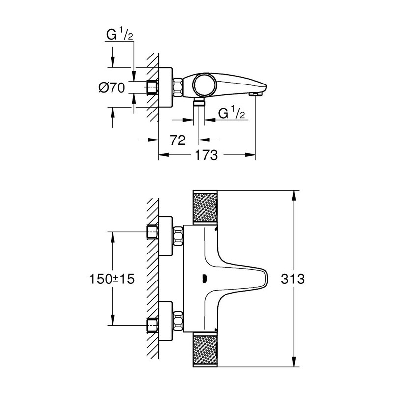 Предназначен для настенного монтажа в ванной комнате. Хромированное покрытие корпуса устойчиво к царапинам и различного рода загрязнениям. Оснащен регулируемым ограничителем потока, автоматическим переключателем ванна/душ, встроенным обратным клапаном, встроенным термоэлементом, аэратором.
