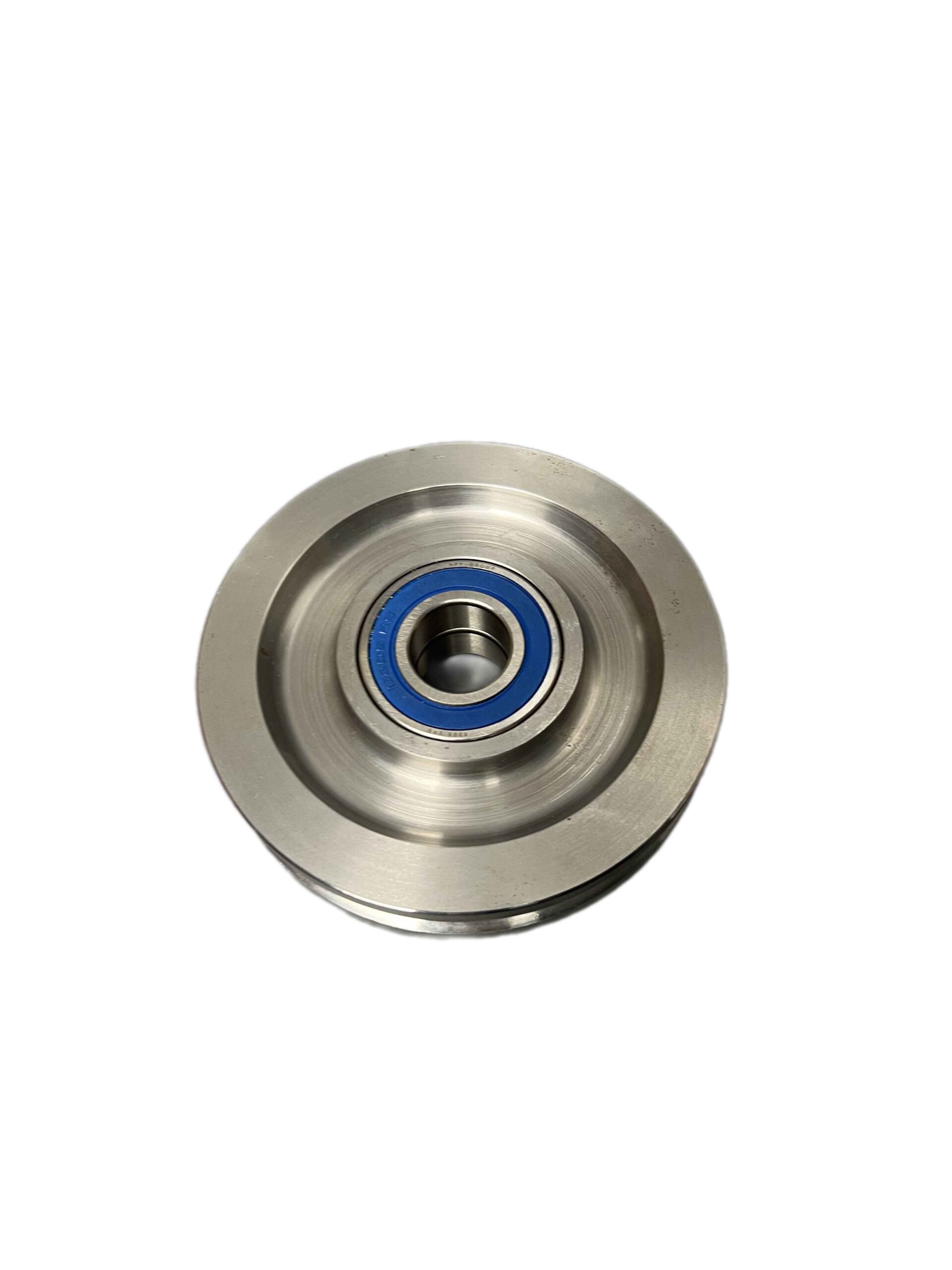 Металлический ролик ф150мм с 2мя подшипниками 180206, канавка под тросик мах 22мм, ширина 32мм, внутренний ф — 30мм. Предназначен для подъема грузов до 3000кг.