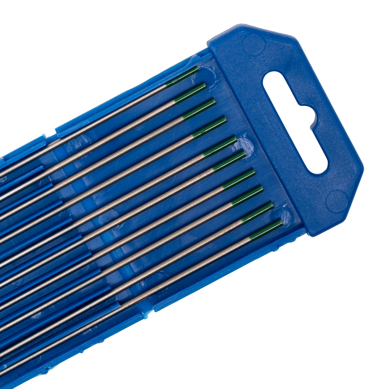 Вольфрамовые электроды WP (Зеленый) применяются для сварки алюминия (Al), магния (Mg) и его сплавов на переменном (AC) токе. Электрод с содержанием вольфрама не менее 99,5%. Такие электроды обеспечивают хорошую устойчивость дуги при сварке на переменном токе