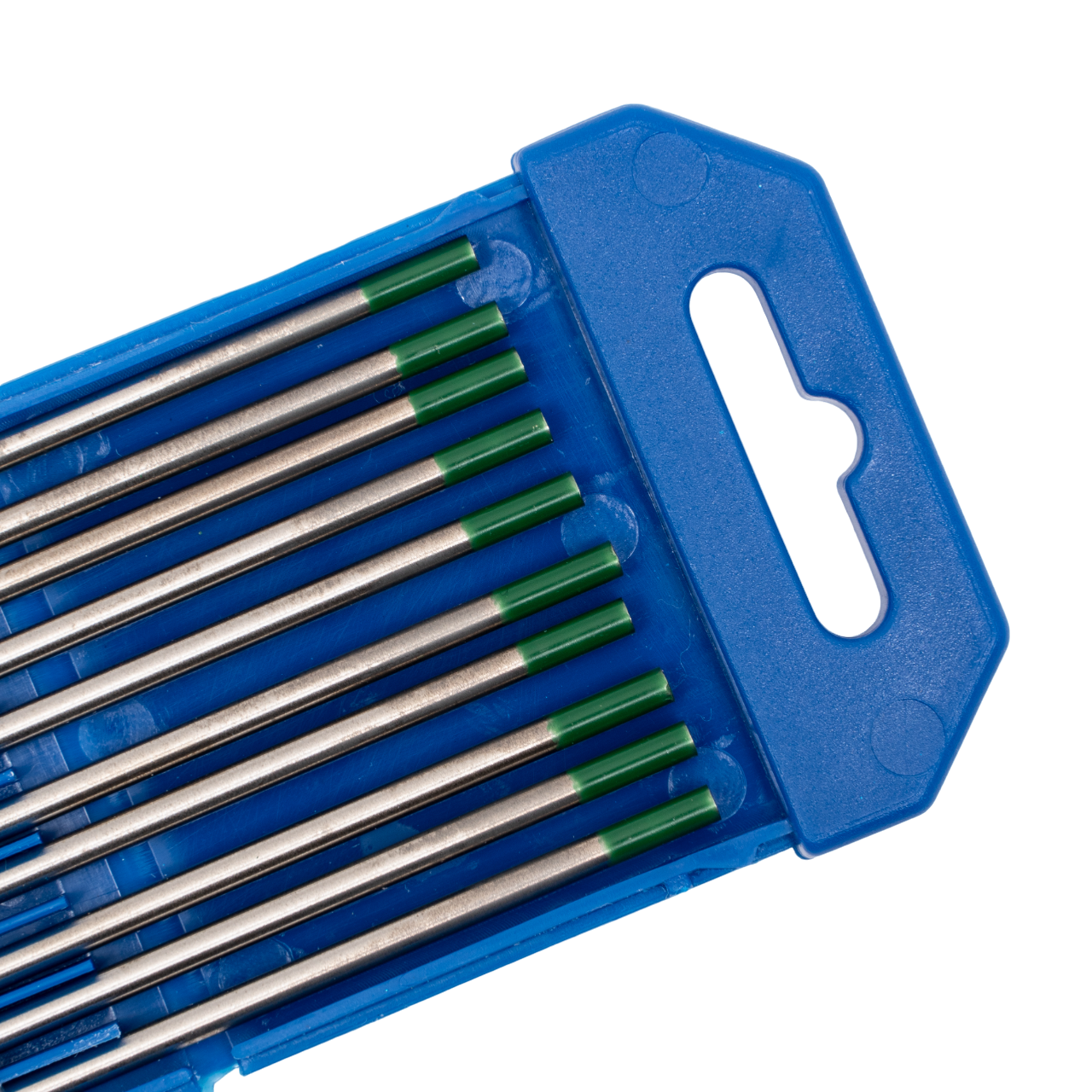 Вольфрамовые электроды WP (Зеленый) применяются для сварки алюминия (Al), магния (Mg) и его сплавов на переменном (AC) токе. Электрод с содержанием вольфрама не менее 99,5%. Такие электроды обеспечивают хорошую устойчивость дуги при сварке на переменном токе