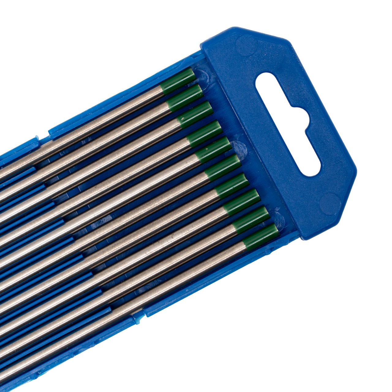 Вольфрамовые электроды WP (Зеленый) применяются для сварки алюминия (Al), магния (Mg) и его сплавов на переменном (AC) токе. Электрод с содержанием вольфрама не менее 99,5%. Такие электроды обеспечивают хорошую устойчивость дуги при сварке на переменном токе