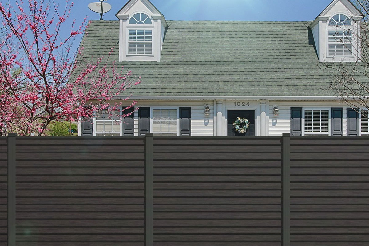 Быстро сборный, аккуратный, стильный cплошной забор «Ёлочка» HILST создаёт красоту и уют, защищает от любопытных взглядов, не превращая дом в тюремную крепость.