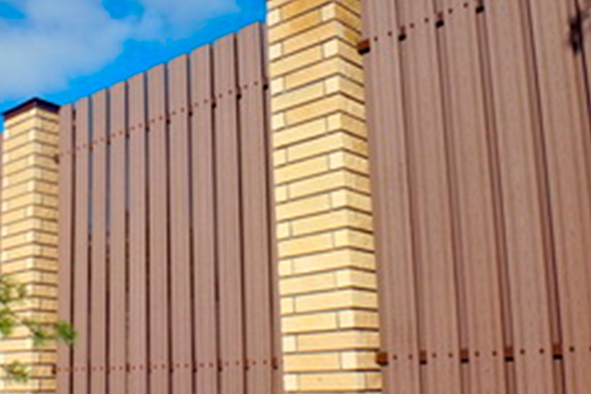 - Крепится штакетник из ДПК к каркасу забора с помощью саморезов.