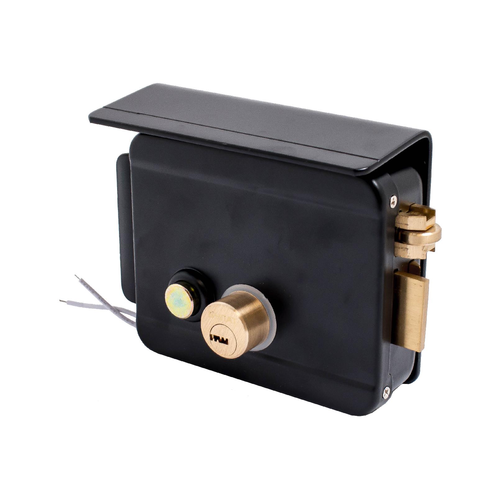 Накладной электромеханический замок соленоидного типа с защитной (монтажной) пластиной, изготовленный из стали с полимерным покрытием. Предназначен для запирания дверей, ворот, калиток с возможностью дистанционного управления, включая интеграцию с системами управления доступом. Работоспособен при температуре от -40 °C до +50 °C. Для питания требуется источник постоянного тока напряжением 9–12 В и током до 3 А (в комплект не входит). Замок может использоваться в качестве механического замка без подключения электропитания. Габариты корпуса: 130 × 105 × 39 мм. Удаление ключевого отверстия: 60 мм. Установочный размер: 94 × 80 мм. Засов: прямоугольный, размером 31 × 18 мм. Внутренняя кнопка открывания с возможностью блокировки ключом. Цилиндровый механизм не фиксируется в корпусе, что позволяет отрегулировать длину под толщину калитки/двери. Комплектация: замок с защитной (монтажной) пластиной , ответная коробка, латунный цилиндровый механизм с 5 перф.ключами, крепежный комплект, паспорт изделия. Гарантия — 5 лет