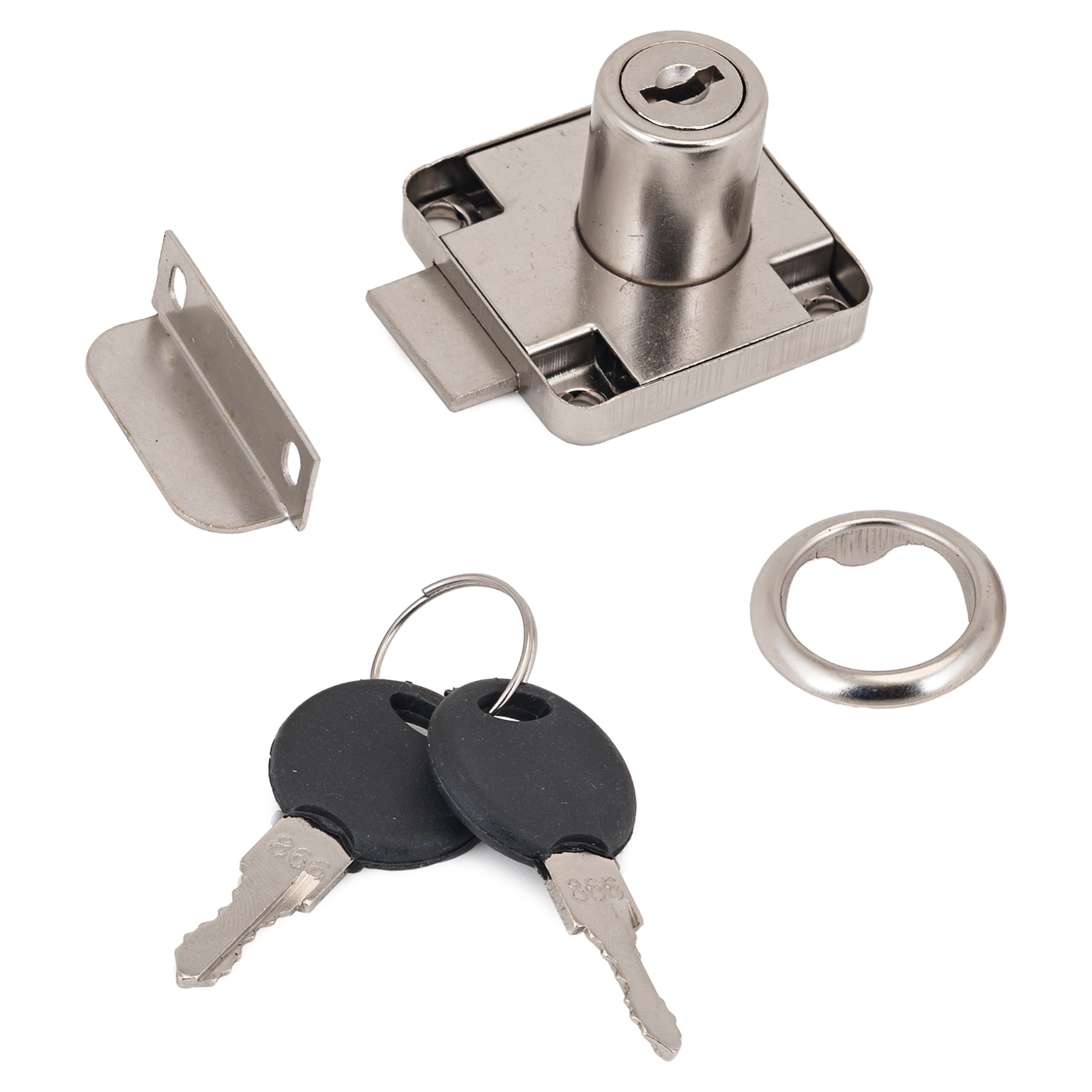 Мебельный замок, устанавливается на двери и ящики максимальной толщиной — 22мм.