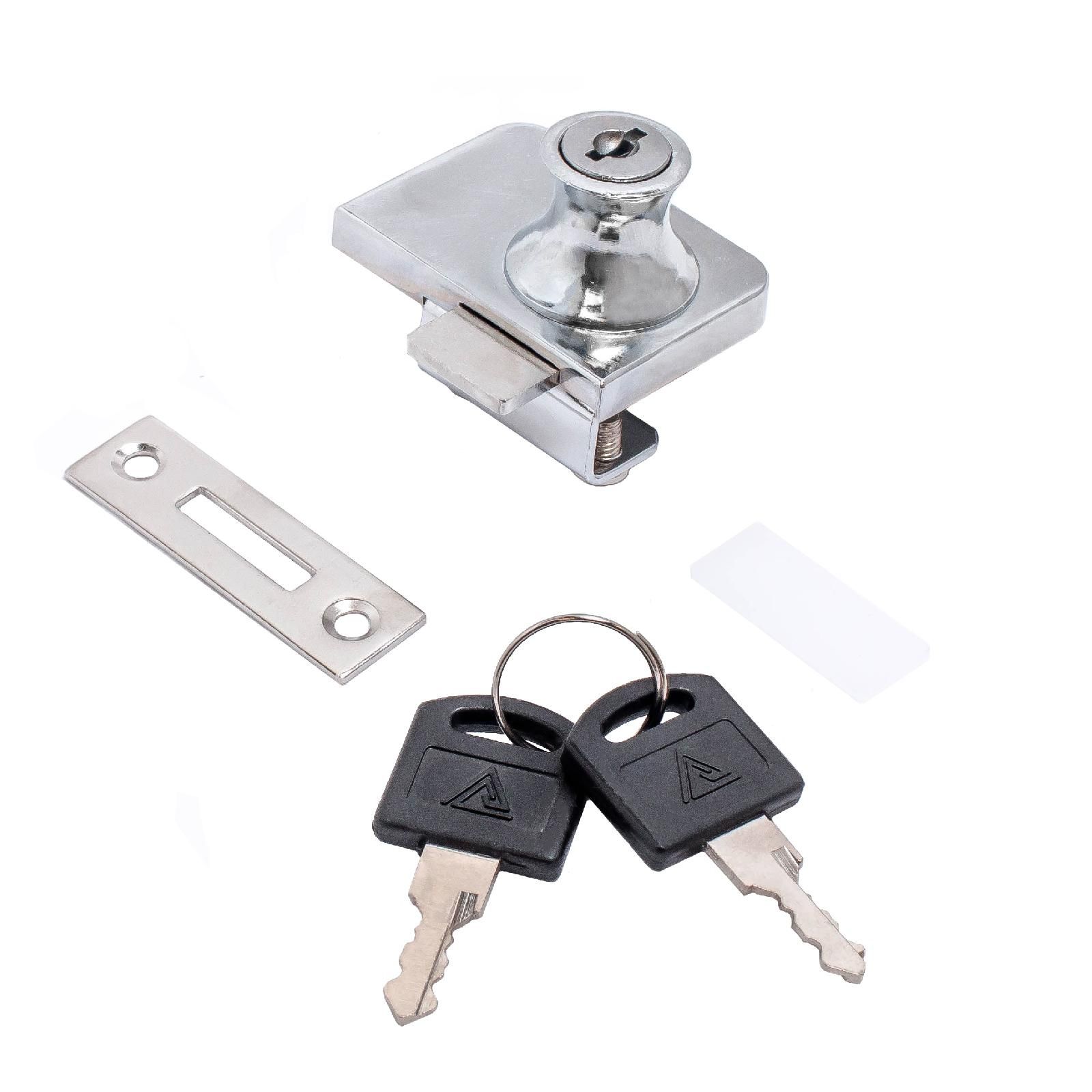 Замок для шкафов и витрин.Предназначен для запирания стеклянных распашных дверей внутреннего расположения. Замок устанавливается без сверления стекла. Максимальная толщина стекла — 8 мм.