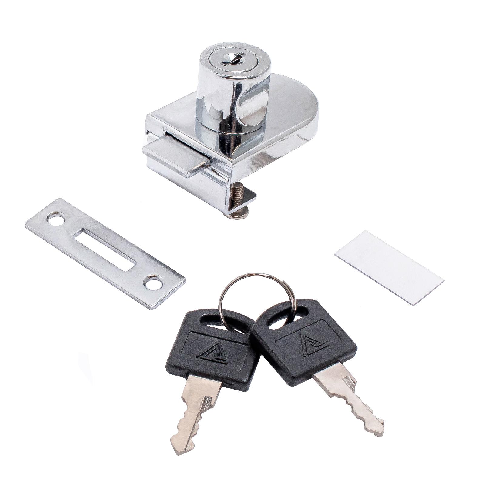 Замок — 1шт. , Ключи — 2шт., Винты — 2шт. Ответная планка -1шт. Прозрачная прокладка для стекла — 1шт.