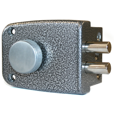 Засов из двух цилиндрических ригелей диаметром 12 мм, с максимальным вылетом 23 мм. Удаление ключевого отверстия — 60 мм.