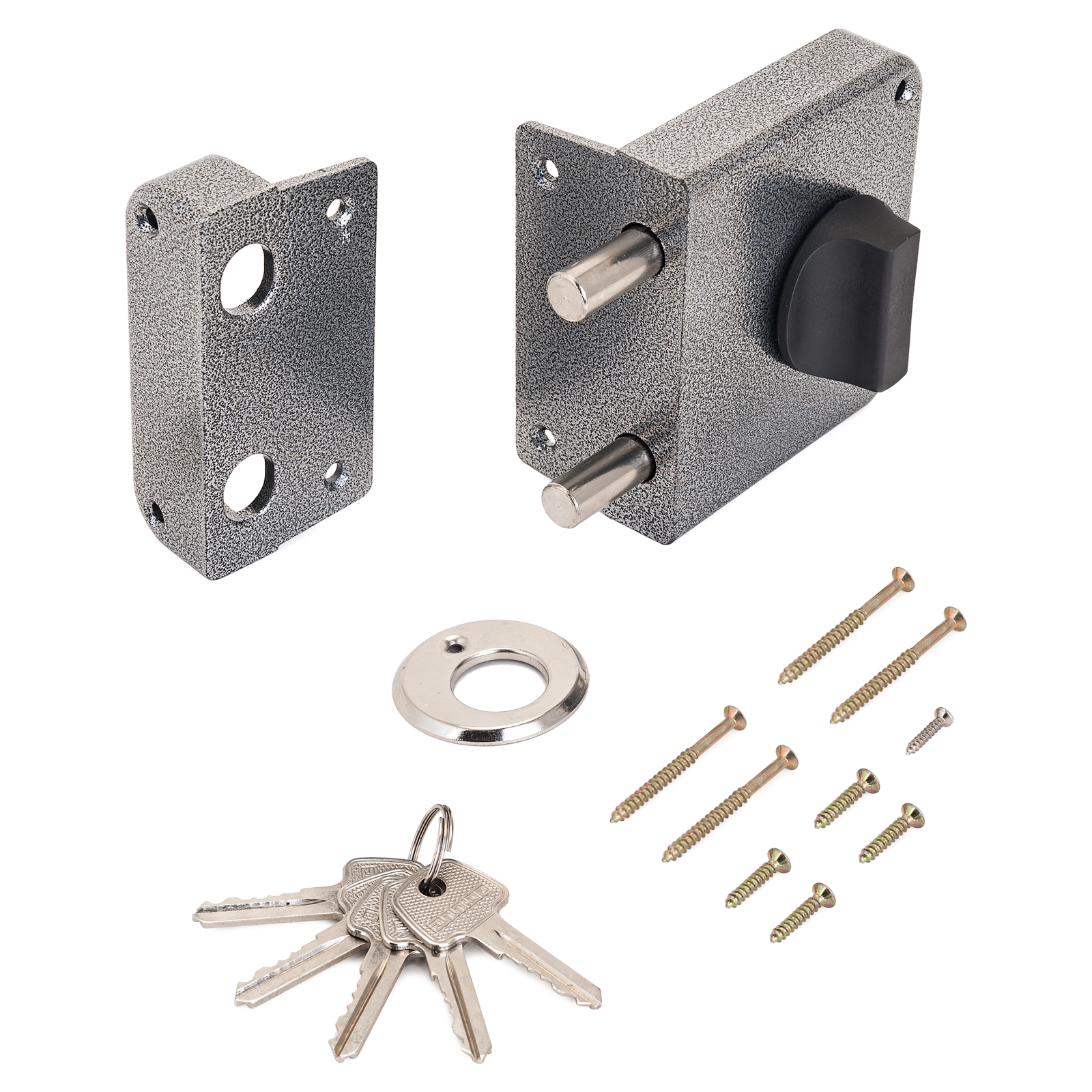 Засов из двух цилиндрических ригелей диаметром 12 мм, с максимальным вылетом 30 мм. Удаление ключевого отверстия — 60 мм.