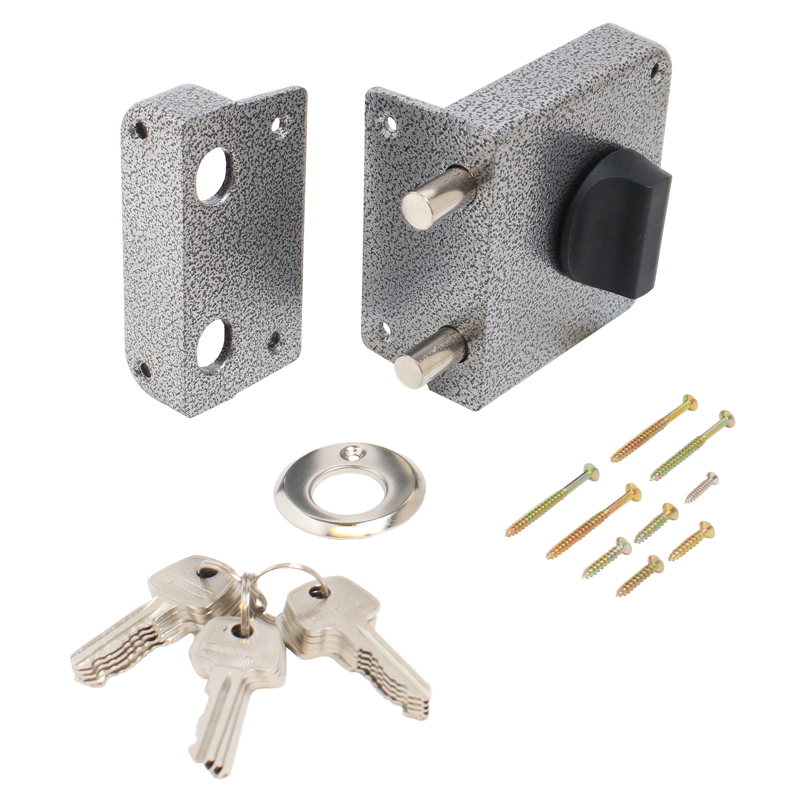 Засов из двух цилиндрических ригелей диаметром 12 мм, с максимальным вылетом 30 мм. Удаление ключевого отверстия — 60 мм.