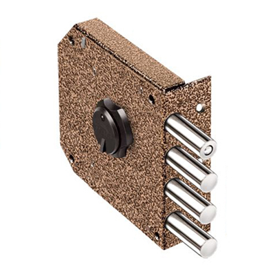 Замок накладной сувальдный. Предназначен для установки на металлические двери. Засов из четырех цилиндрических ригелей диаметром 14 мм, с максимальным вылетом 40 мм. Удаление ключевого отверстия — 68 мм. Количество оборотов ключа — 4. Габариты замка — 138,5х128х20 мм. Комплектация — 5 ключей, накладка из полированной нержавеющей стали, пластмассовая шторка. Защита от криминального и силового взлома, высверливания, выдавливания.