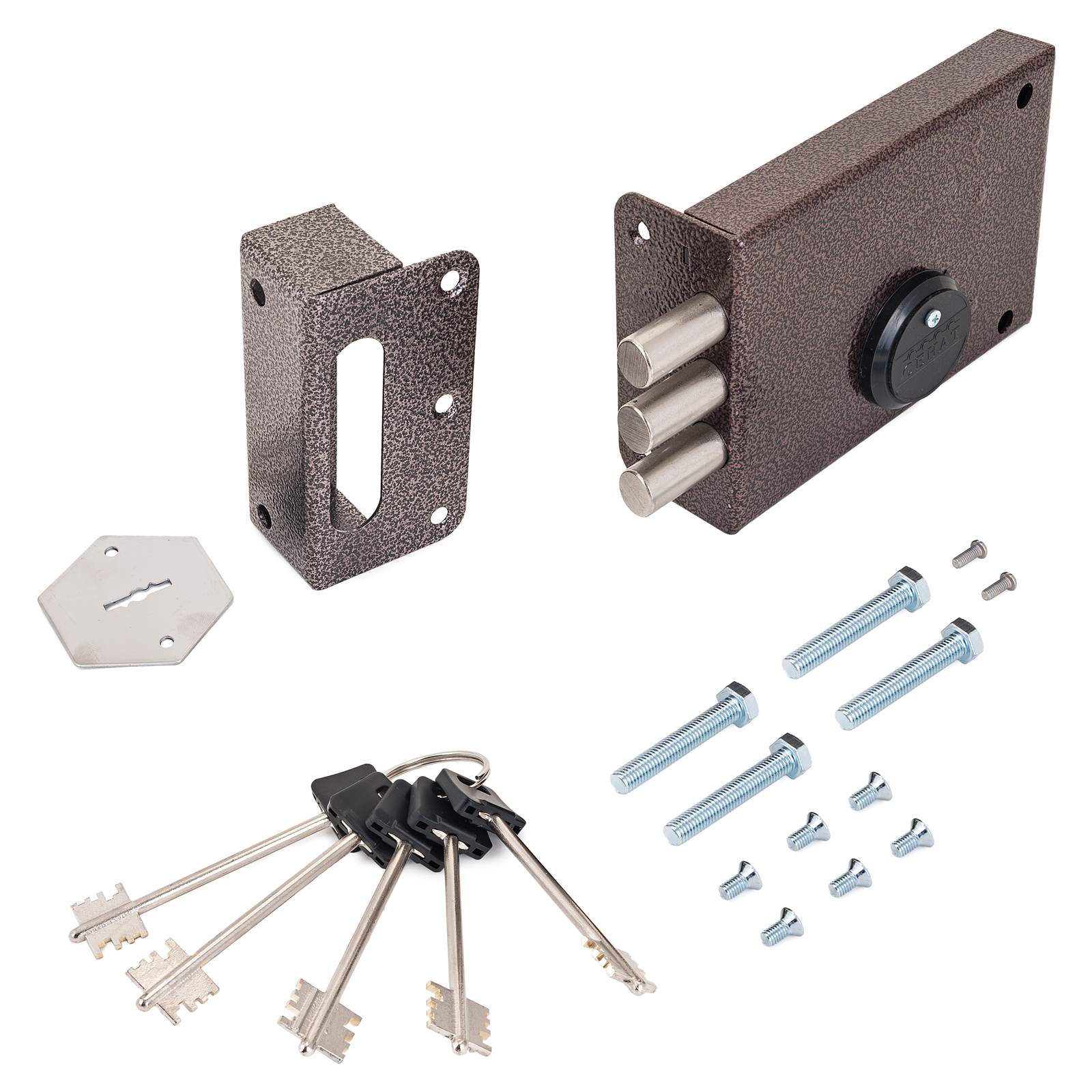 Замок ЗНС-6-2 — три стержня ригеля, открывается и закрывается с наружной и внутренней сторон комплектным ключом.
