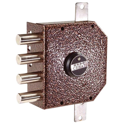 Замок накладной сувальдный с тягами. Предназначен для установки на металлические двери. Засов из четырех цилиндрических ригелей диаметром 18 мм, с максимальным вылетом 40 мм. Удаление ключевого отверстия — 64 мм. Количество полуоборотов ключа — 4. Габариты замка — 135х146х32,5 мм. Защита от вскрытия замка отмычкой, защита от высверливания стойки ригеля и защита от вскрытия методом проворота.