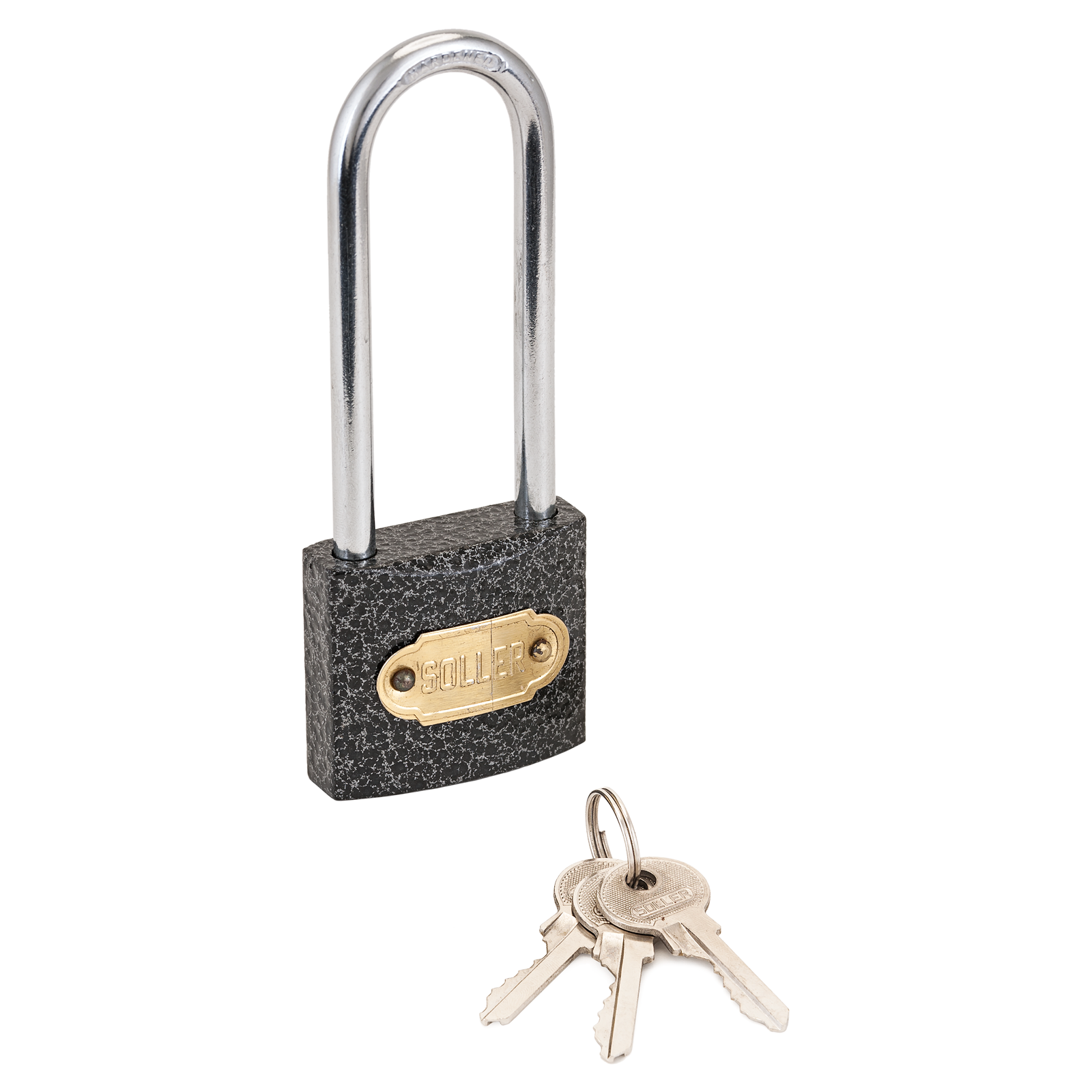 Замок навесной с длинной дужкой, цилиндровый общего применения. Оптимальное соотношение цены и качества. Материал корпуса чугун, покрыт полимерной краской. Материал дужки закаленная сталь, гальваническое покрытие. Автоматическое запирание при нажати на дужку. Комплектуется 3 английскими ключами. Ширина корпуса — 37 мм. Ширина проема под дужкой — 21 мм. Диаметр дужки 5 мм.