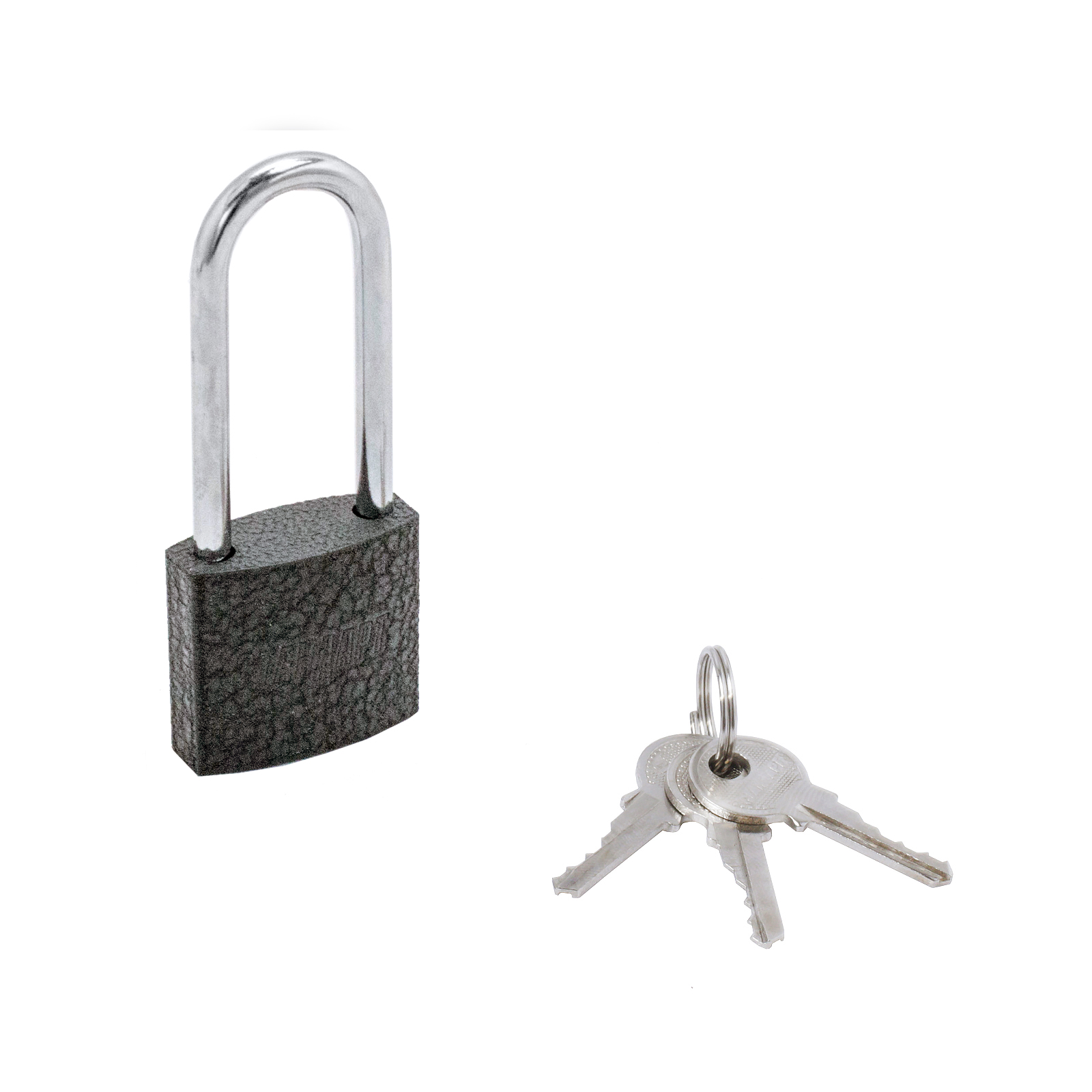 Замок навесной цилиндровый общего применения. Материал корпуса — чугун. Закаленная стальная дужка диаметром 4,5 мм; проем дужки — 44 мм по высоте и 15 мм по ширине. Габариты корпуса — 30х27 мм. Комплектуется 3 английскими ключами. Замок имеет функцию автоматического закрывания.
