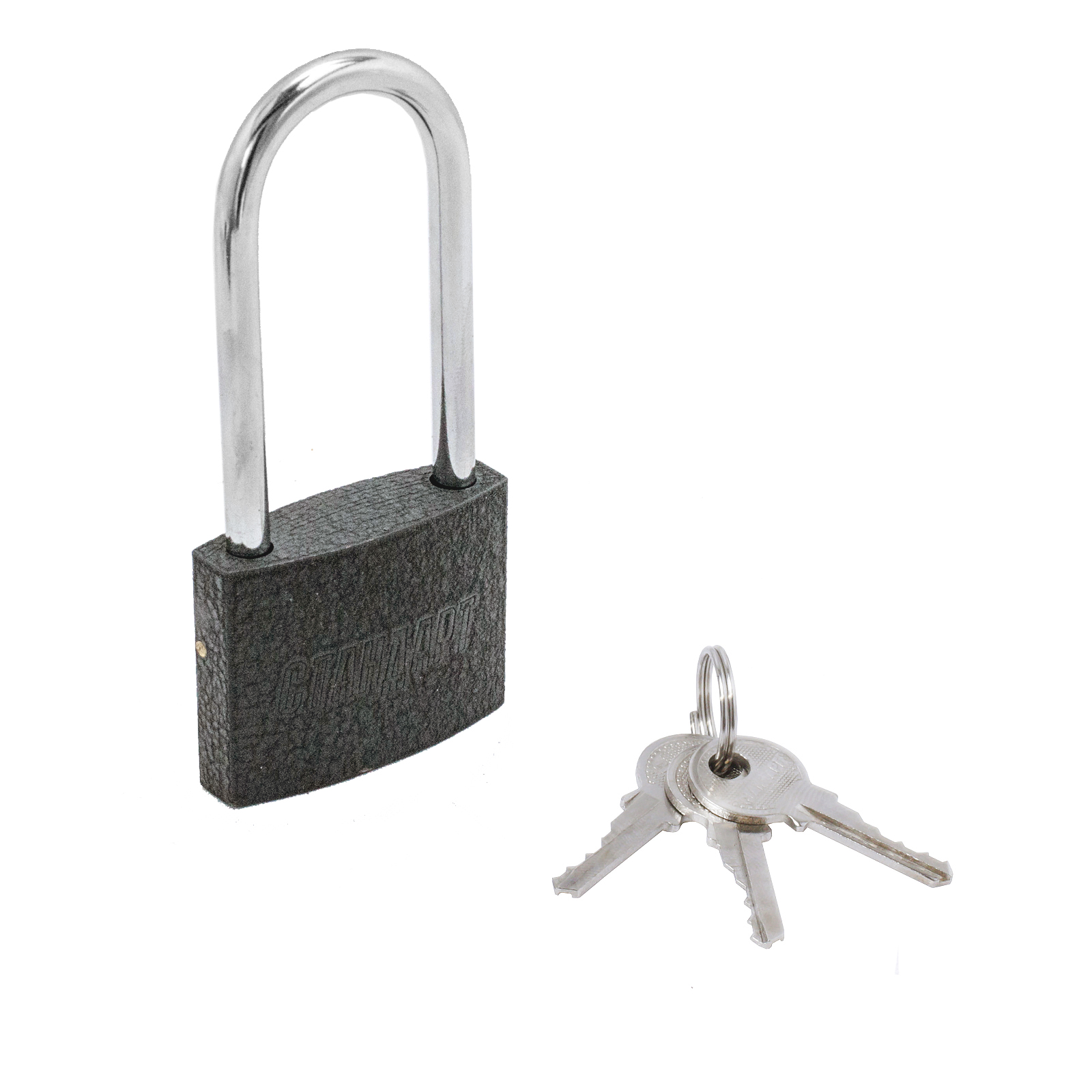 Замок навесной цилиндровый общего применения с классической дужкой. Используются на дверях, оборудованных проушинами.