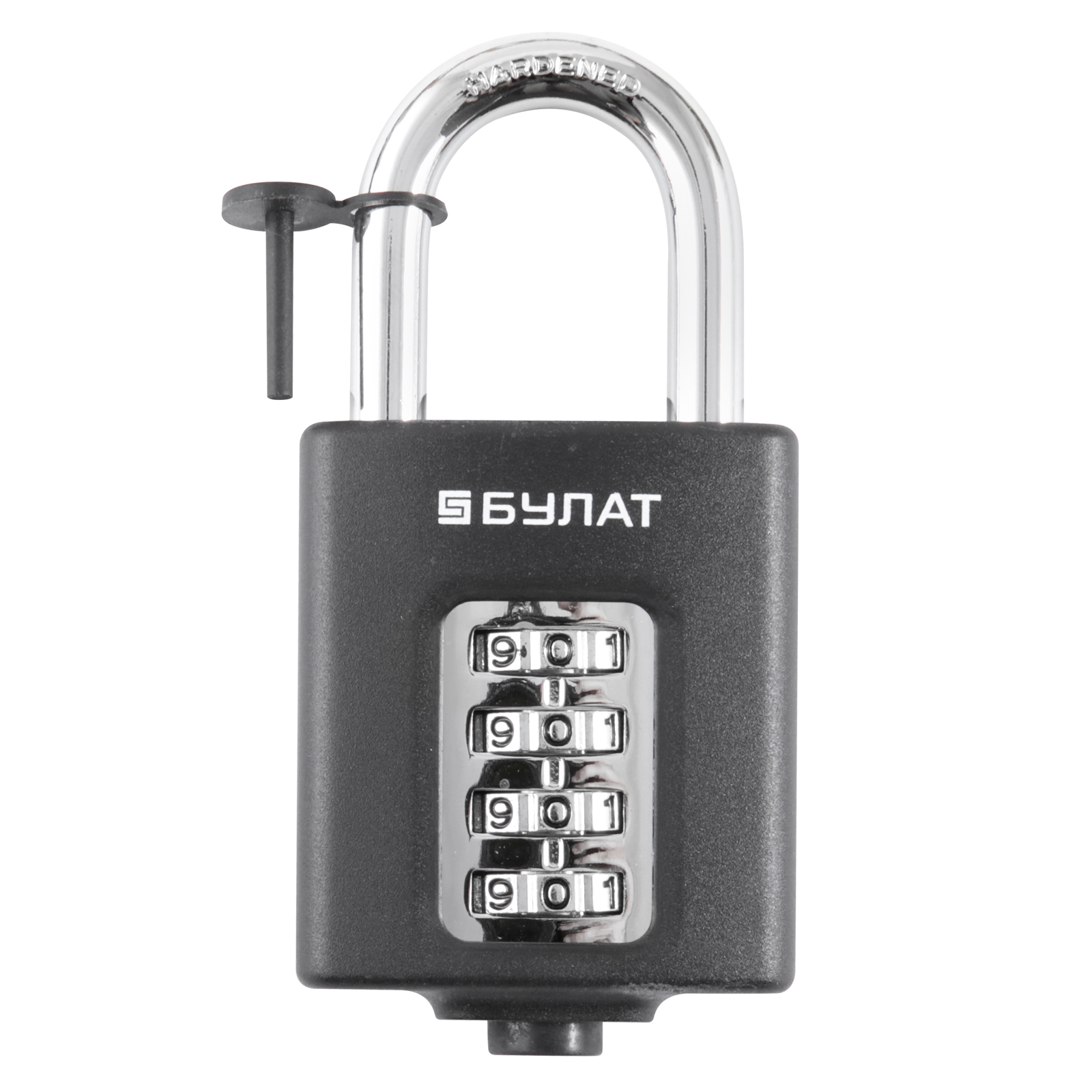 Замок навесной с кодовым механизмом, общего применения с классичекой дужкой. Механизм перекодируется (заводской код 0000). Используется на дверях, оборудованных проушинами. Ключ не нужен — доступ для неограниченного количества пользователей, которым известен код. Секретность 10000 комбинаций. Материал корпуса: сплав цинка (ЦАМ), корпус покрыт полимерной краской. Размер корпуса 50х59х20 мм. Стальная закаленная дужка диаметром 8 мм с гальваническим покрытием. Проем дужки: по высоте 33 мм, по ширине 24 мм. Как сменить код: наберите заводской код 0000, откройте замок, вставьте до упора ключ перекодировки (или острый тонкий предмет) в отверстие под дужкой замка, измените комбинацию цифр, вытащите ключ перекодировки. Блистерная упаковка. Сертифицирован в РФ. Гарантийный срок 5 лет.