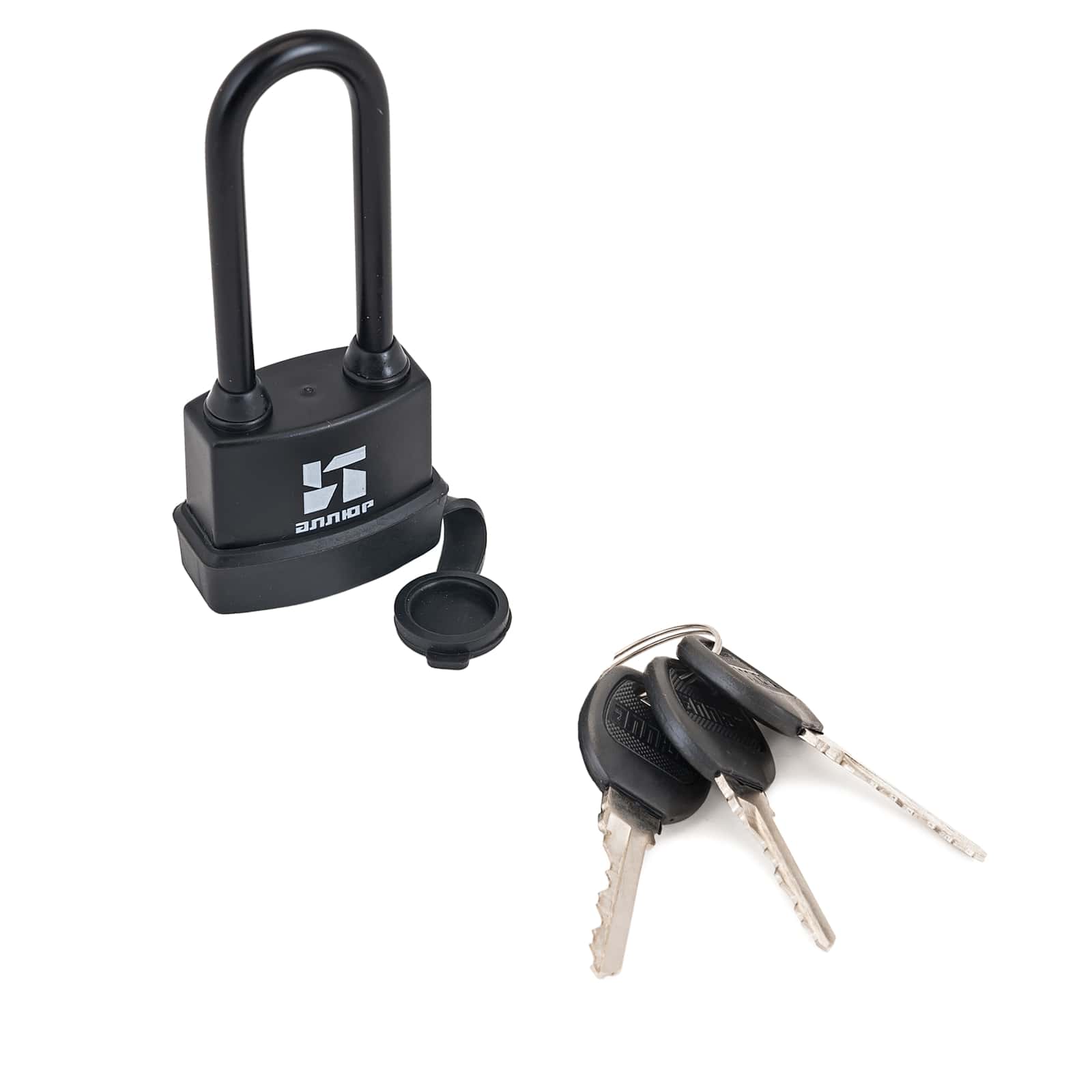 Замок навесной с длинной дужкой, всепогодный, с одним секретом.