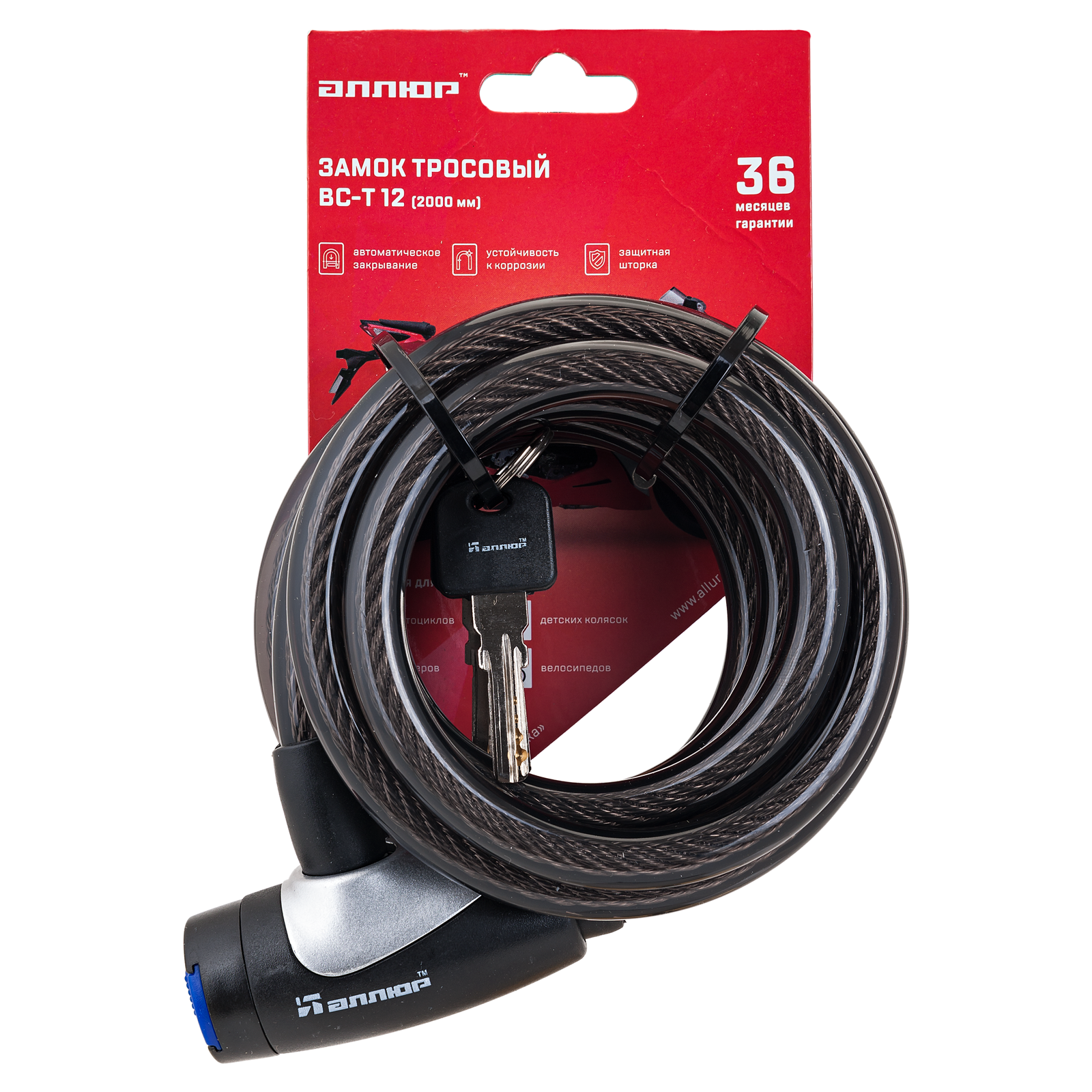АЛЛЮР ВС-Т 12 (2000 мм) Замок велосипедный тросовый (30,10)